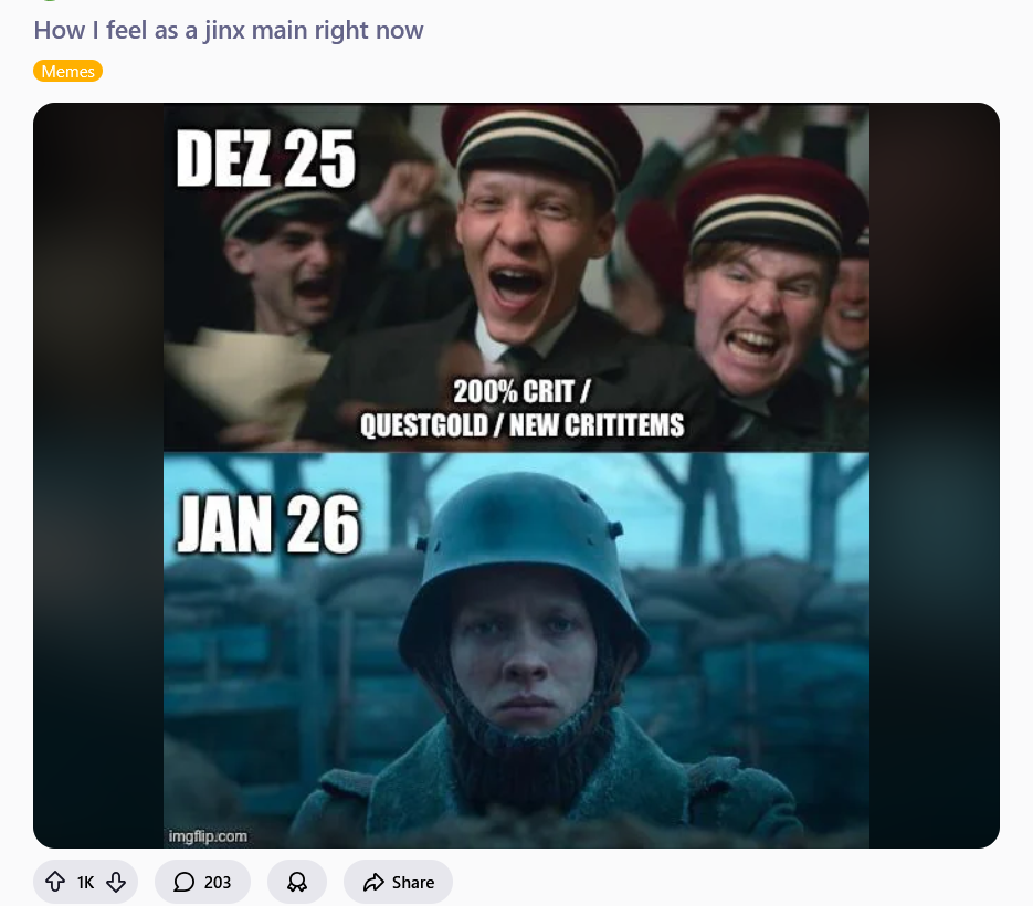 >>50606830 >Вместо того чтобы убить джина и на резетах джинксе сделать триплу Хуясе диванный гейплей.