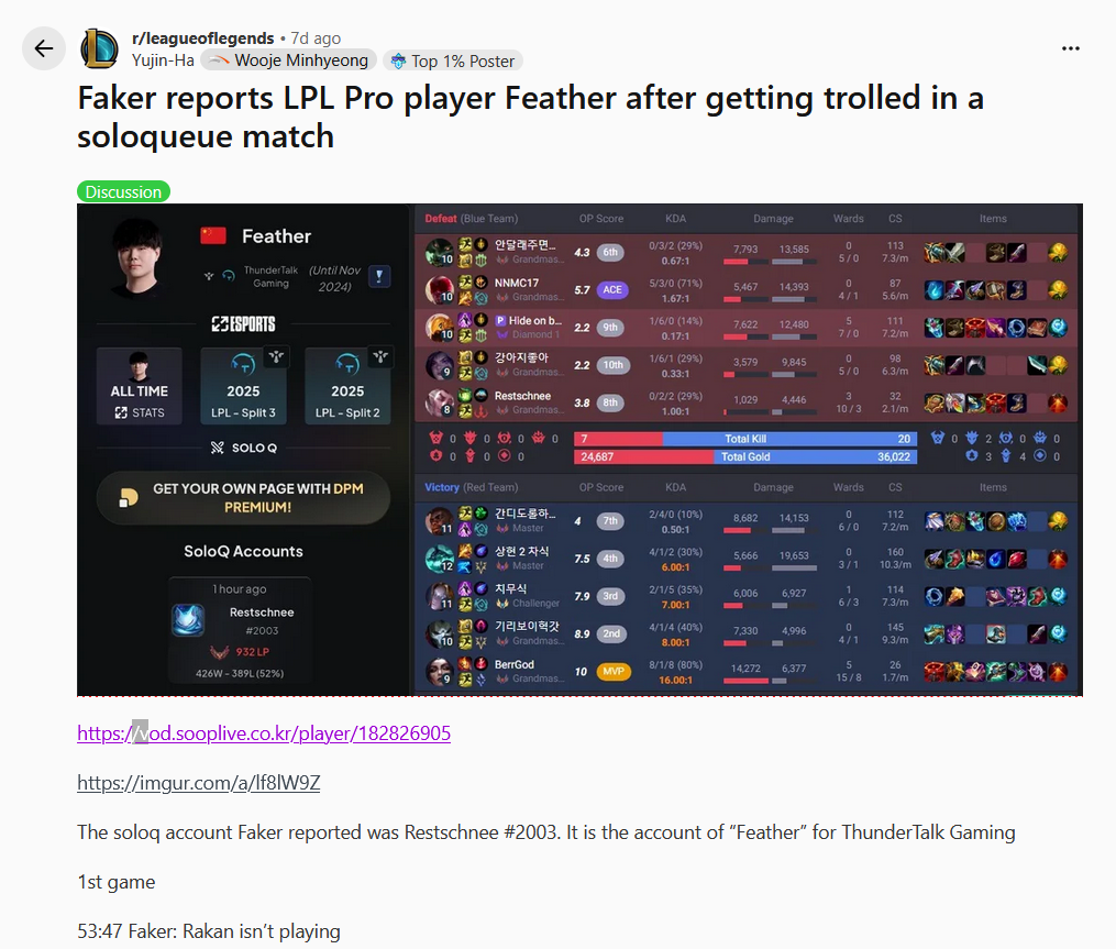 >>50603497 У меня игры даймонд+ аверейдж. Как ты думаешь ко мне залетают в игры челы которые умеют играть в лигу даунов? И почему я в случае слива лайна не кормлю оппонента который играет сильнее меня на лейнинг стадии?