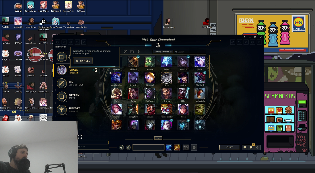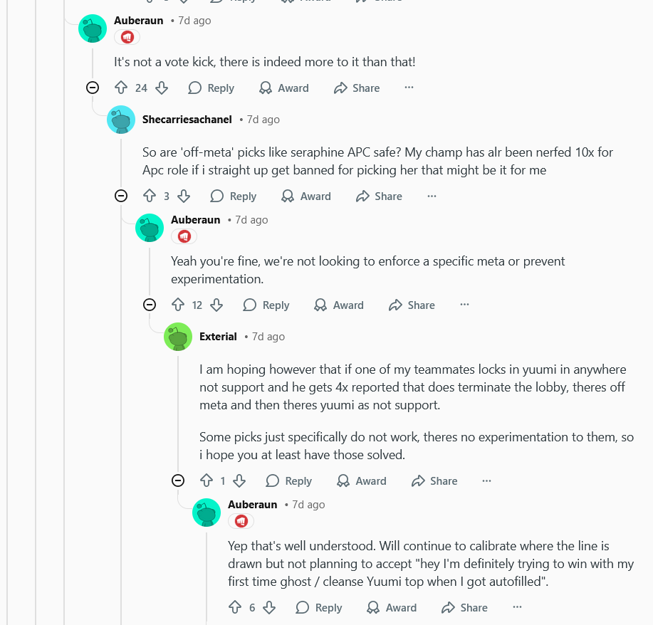 После игры посмотрел ради интереса, нахуя они так делают. Акшан и Ксая либо рили умственно-отсталые, либо на каком-то шизочеллендже, типа проебать на каждом чемпионе. Литералли по 1-2 игры на каждом чемпе катают.