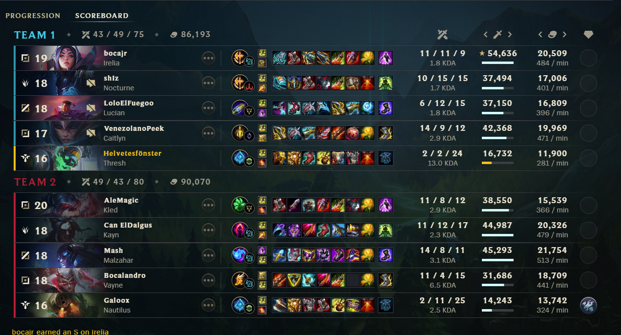 >>50678860 Сука, зашёл случайно в обычку вместо ранкеда, а тут СНОВА ТО ЖЕ САМОЕ БЛЯТЬ, НО ЕЩЁ ХУЖЕ. На самом деле даже неплохо, с каждой такой игрой я всё ближе к пониманию того как правильно тащить соло.