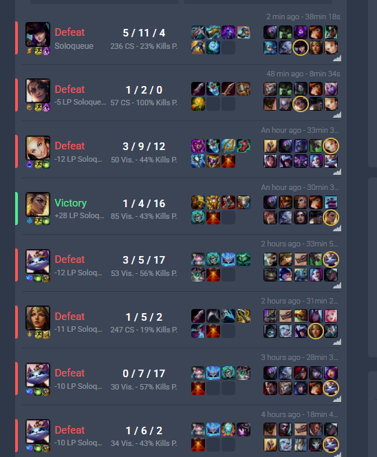 после лузстрика, где я проебал 250 лп (13 чистых лузов) у меня пошли одни победы, где команда сама мне победы дарит удивительно как же так ну и после побед замечаю что и настроение реально лучше в играх, потому что когда срито пулит уебанов каждую игру, я уже в любой игре с самого старта играю от балды и не пытаюсь победить