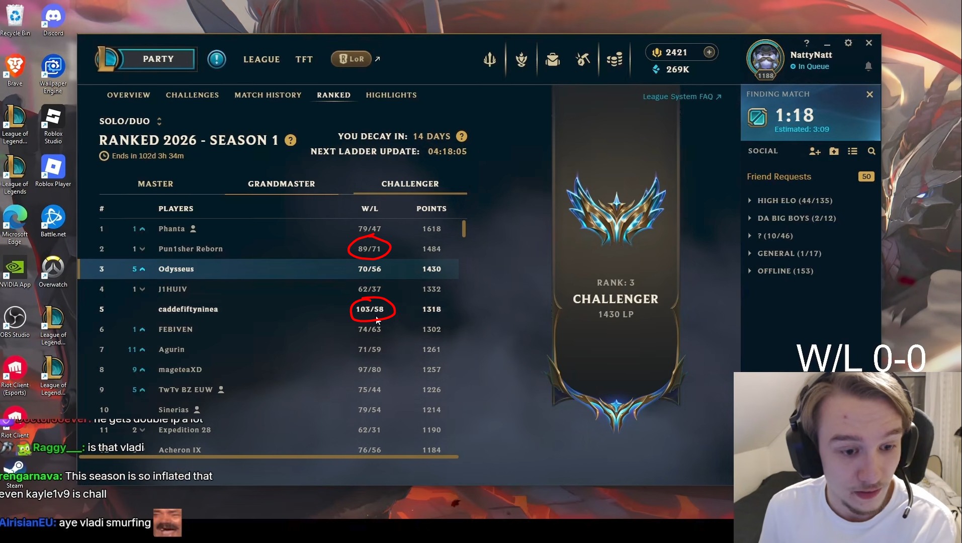 >>50689584 Так и речь про то чтобы апаться. Если ты 4 сезона, как тут выше, катаешься в сильвере, то для выхода в голду тебе надо иметь миниум 70-75%вр, потому что как только ты чуть поднимешь голову, то прирост ЛП измениться не в твою пользу и 1 поражение будет стоить примерно 3 побед.