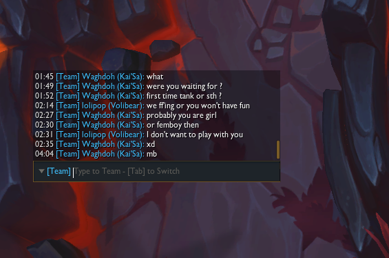 Начал выёбываться на меня что я не так играю и мне нужно играть по-другому. Я бы спокойно к этому отнёсся если бы он написал нормально без токса. А так он токсил, я ему написал что мы ффаем чтобы не тратить время друг друга, я не хочу играть с токсами, мне не интересно.