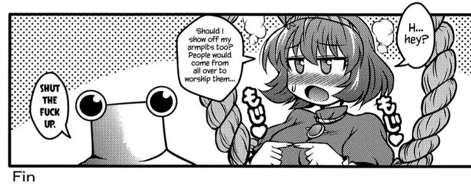 Тру годноты по тохе довольно мало, на самом деле. В основном подобные смешнявочки, где львиная доля хохмы пройдет мимо человека не знакомого с персонажами.