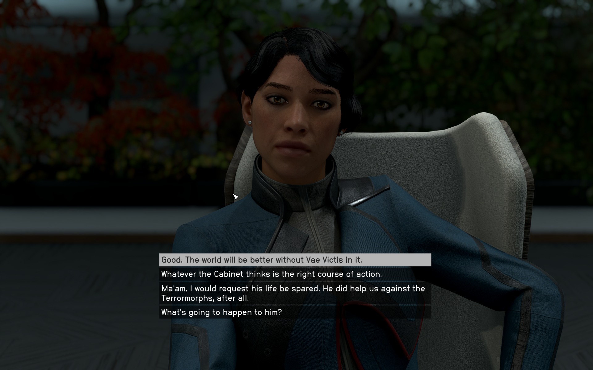 >>50598660 >тут беседа всегда в своём репертуаре Стоит отметить еще очень большой скачок вперед в плане ролевой диалоговой системы. Раньше ты отыгрывал через геймплей, а теперь можно и диалогами поддерживать погружение. Есть вот прям перки и действительно довольно большое количество особых диалоговых опций. Пара рандомных примеров из моего прохождения: 1) В ветке UC есть мини-квест в ходе которого ты должен убедить дипломата фристаров помочь в содействии. В этом диалоге мне не пришлось проходить проверки там всякие или соглашаться на какие-то условия, так как ранее я прошла уже ветку рейнджеров и смогла чисто своим авторитетом убедить ее. 2) Ну вот тот самый скриншот из прошлого треда, где в одном квестовом диалоге с полицаем Неона у меня было опций 5 разных (все уже не вспомню). Опция классического убеждения, опция через перк неон рэт, опция через состояние персонажа в розыске и тд. Тут еще наверняка были опции связанные с иными перками, с наличием импланта риюджина, наверняка в самом убеждении можно было использовать что-то. 3) Тот самый мозговой имплат я получила уже ближе к концу прохождения, но даже так сумела пару раз его поюзать в длц, что очень круто.
