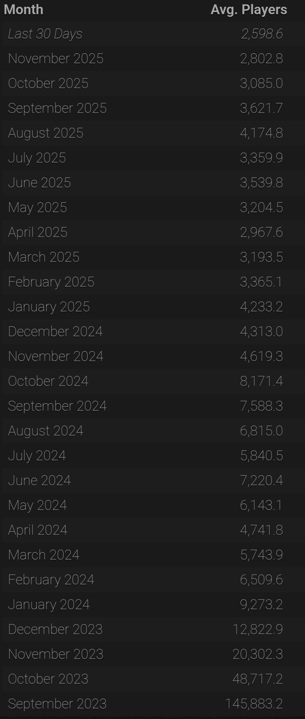 >>50607992 На рождественско-новогодних выходных? Со всего мира? Ну, для маленькой инди-студии да, это был бы впечатляющий результат, хотя много инди-игр имеют онлайн значительно выше.