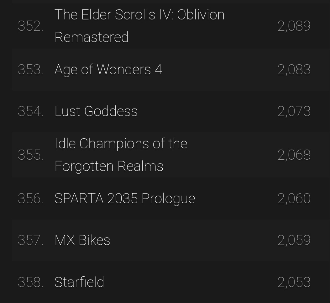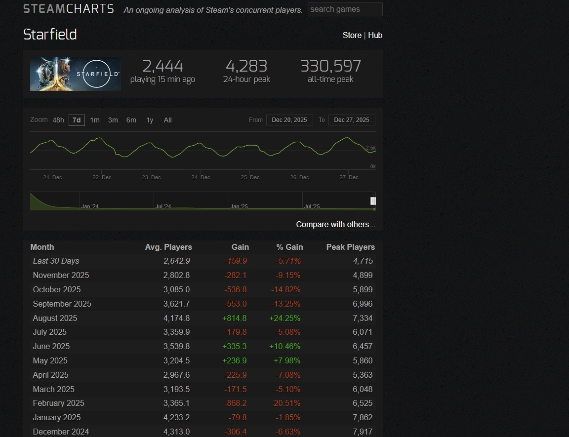 Что-то я так и не увидел статистики от наших знатоков-хейтерков. Мамка спать загнала? Очередное доказетельство, что вы только протыков на ютубе смотрите и не понимаете, насколько Starfield величественная и востребованная игра.