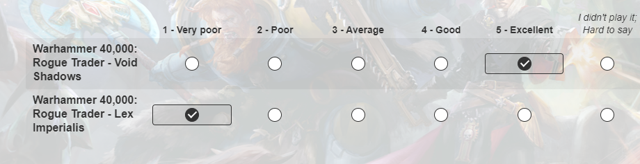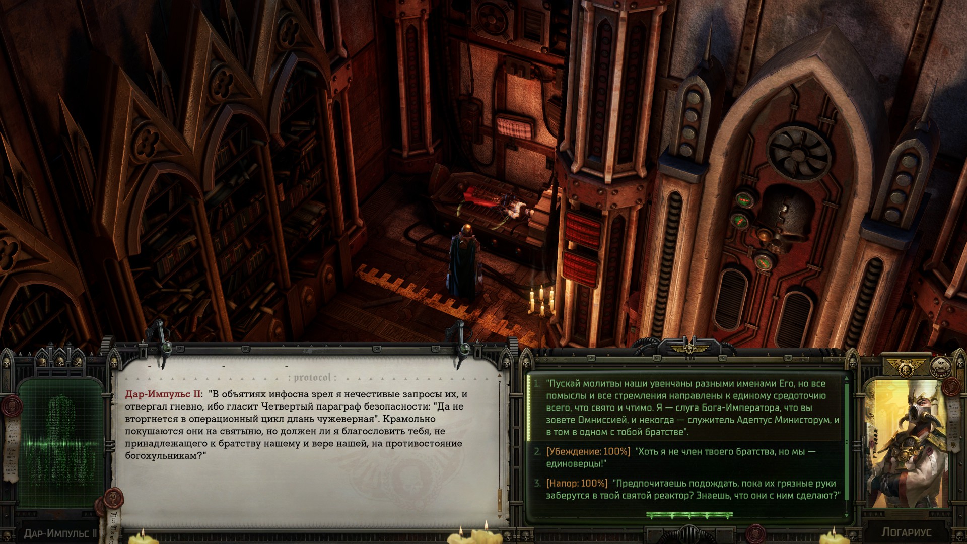 КАЖДОМУ ВАХАЕБУ, ВАХАФАНУ, ЗАЛЕТУХЕ И ЗНАТОКУ ЛОРА ЧИТАТЬ ВНИМАТЕЛЬНО: Совокоты известны крайней разношерстностью своих сюжетов — в одной игре может сочетаться как аниме/трансухи/соя так и самые базированные персонажи. А также известны своим вольным отношением к сеттингу: с Вахой это может вызвать горение жоп. Воспринимайте Rogue Trader как неканоничное произведение или фанфик. Хотите 100% следования "канону" — идите почитайте рулбук.