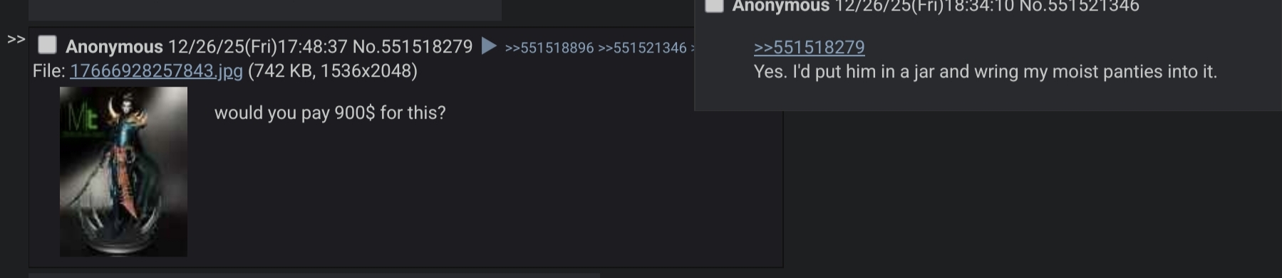 >>50605299 >мне нравятся прикольные фигурки и не важно какого ценового диапозона И я рад за тебя, анон.