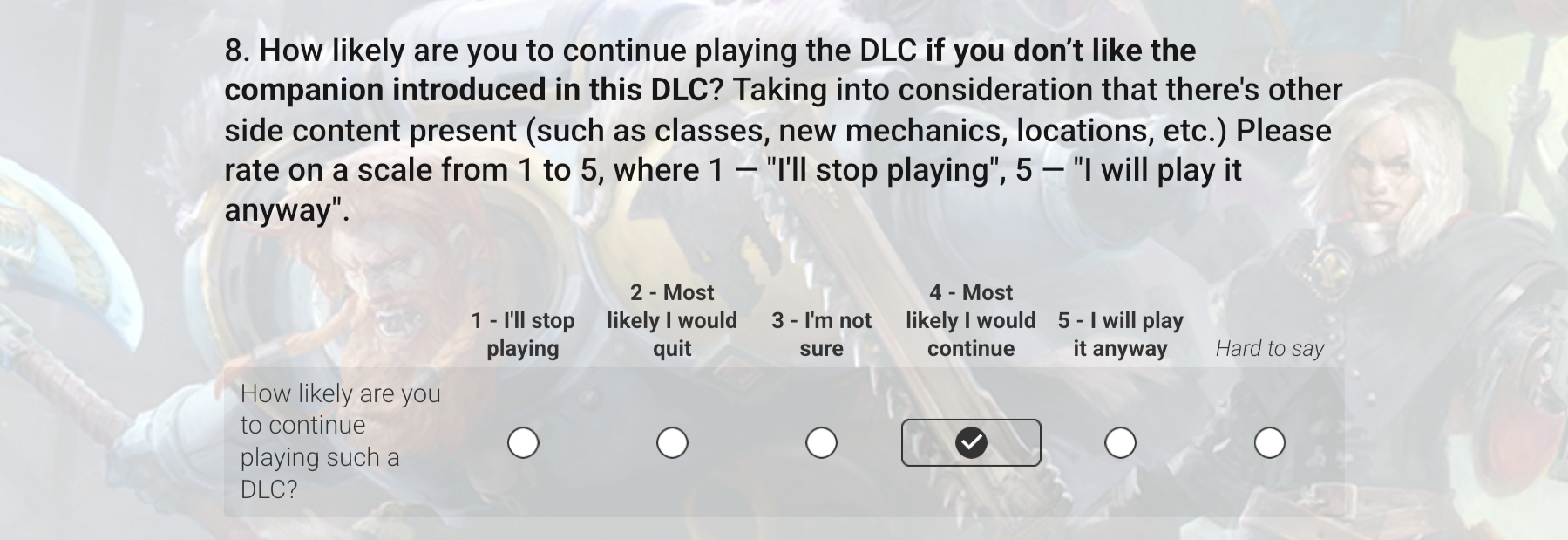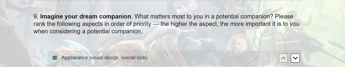 Поставил в опроснике гнойкотов по компаньонам сексуальность и романсибельность на последнее место. Авось и прорастут семена.
