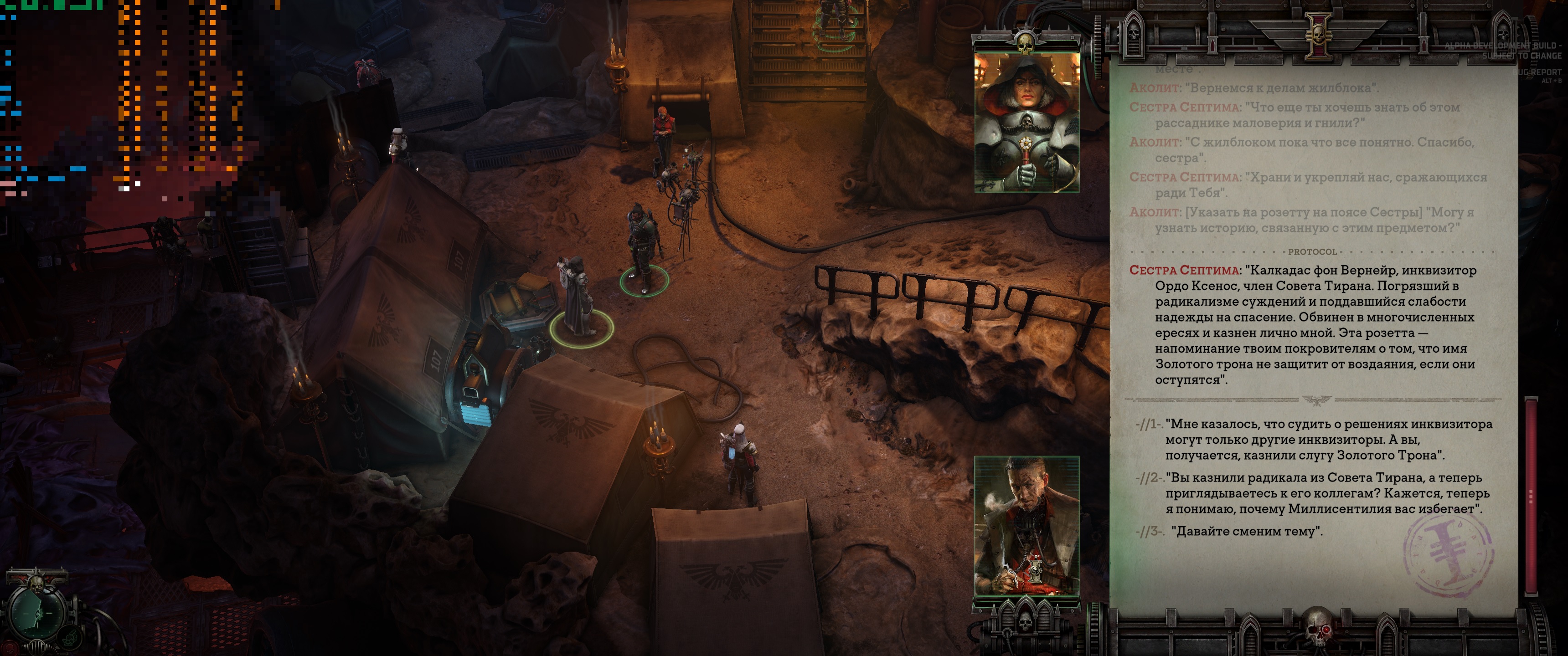 >С самого начала к нам пати дают сильную чернокожую женщину, которая очень умная и даёт пояснени в любых вопросах. Потом нас берут в оборот сильная сороритская женщина, которая хвастается тем что казнила инквизитора без суда, и сильная инквизиторская женщина, заставившая эльдарского навигатора плясать под свою дудку. ...