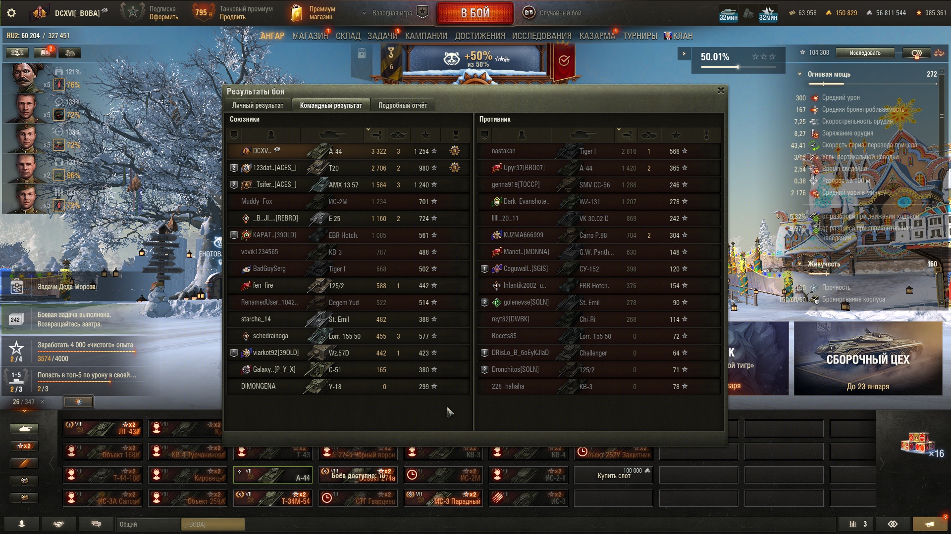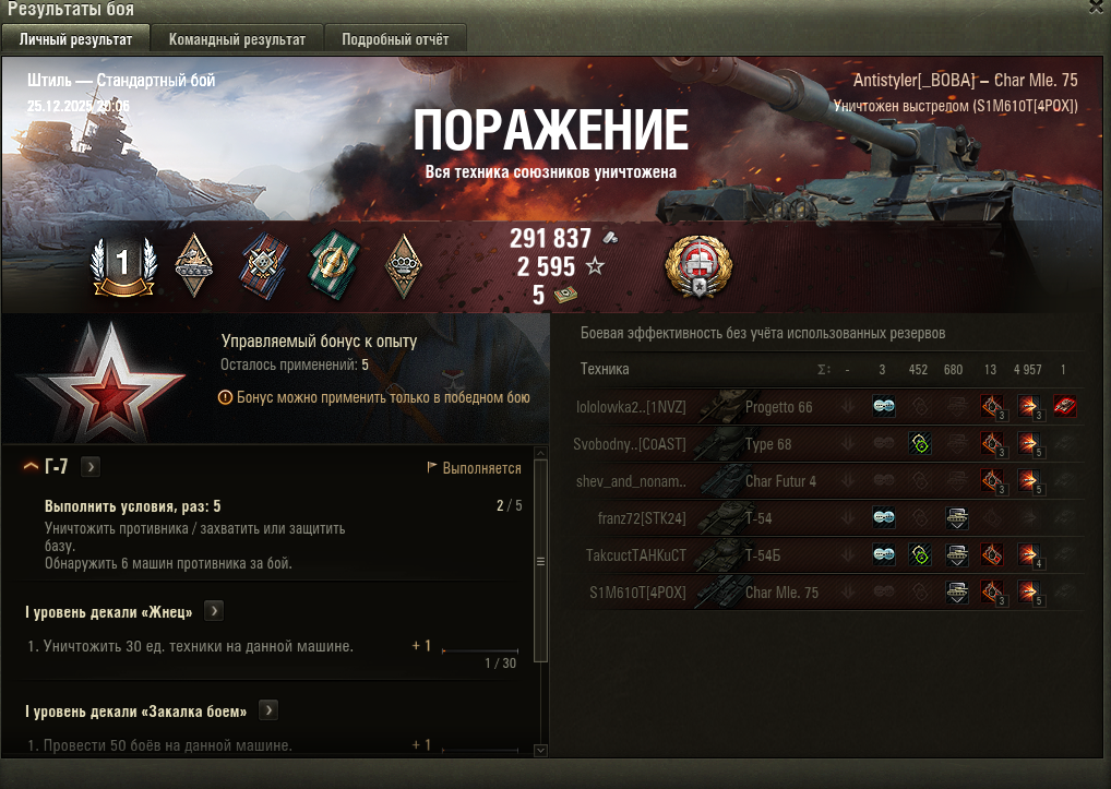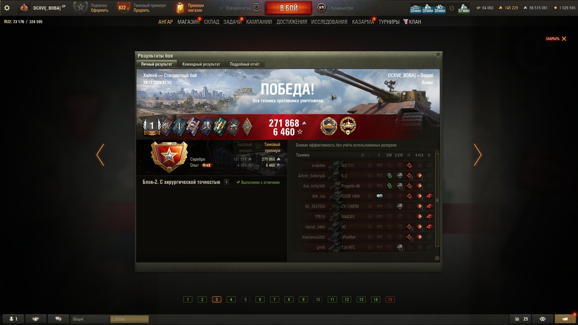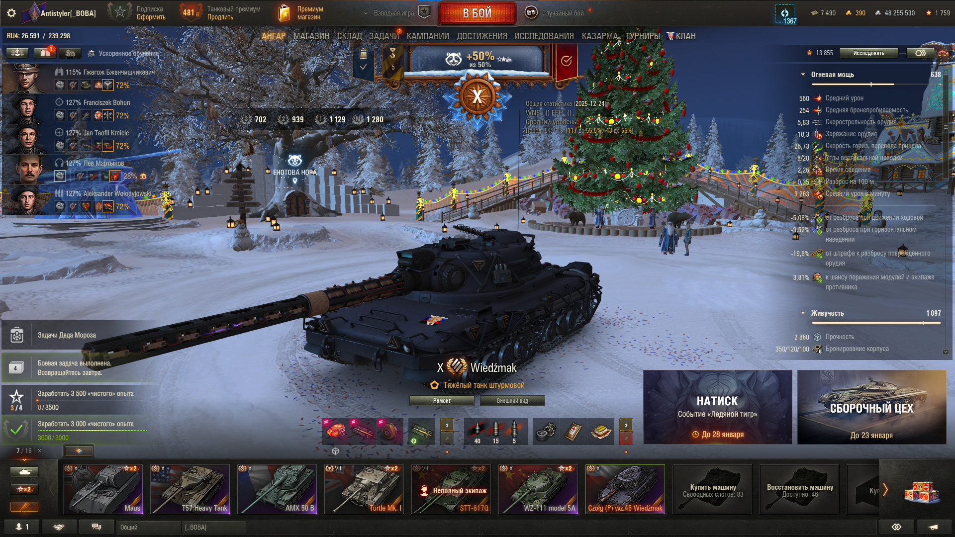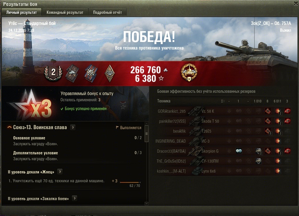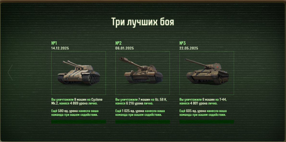 >>50588660 → >>50591102 → >>50591076 → Спасибо анонам за советы в прошлом треде, пердячая тяга не подвела, влетел с трех стами хп в Штюгмауса с 800ми, но видимо кто-то успел вдамажить ему и прокнуло. Осталась задачка на криты, если есть мысли и желание ими делиться, отговаривать не буду. Условие: Основная задача — повредить или вывести из строя суммарно 6 внутренних модулей или членов экипажа, второстепенное задание — уничтожить 5 машин противника. Леха 6к ммр