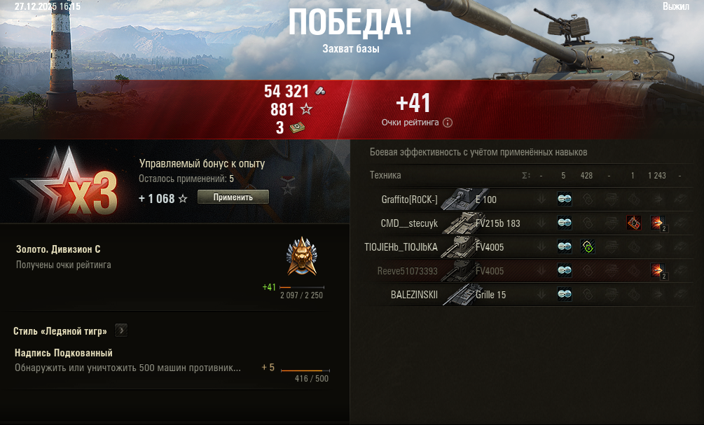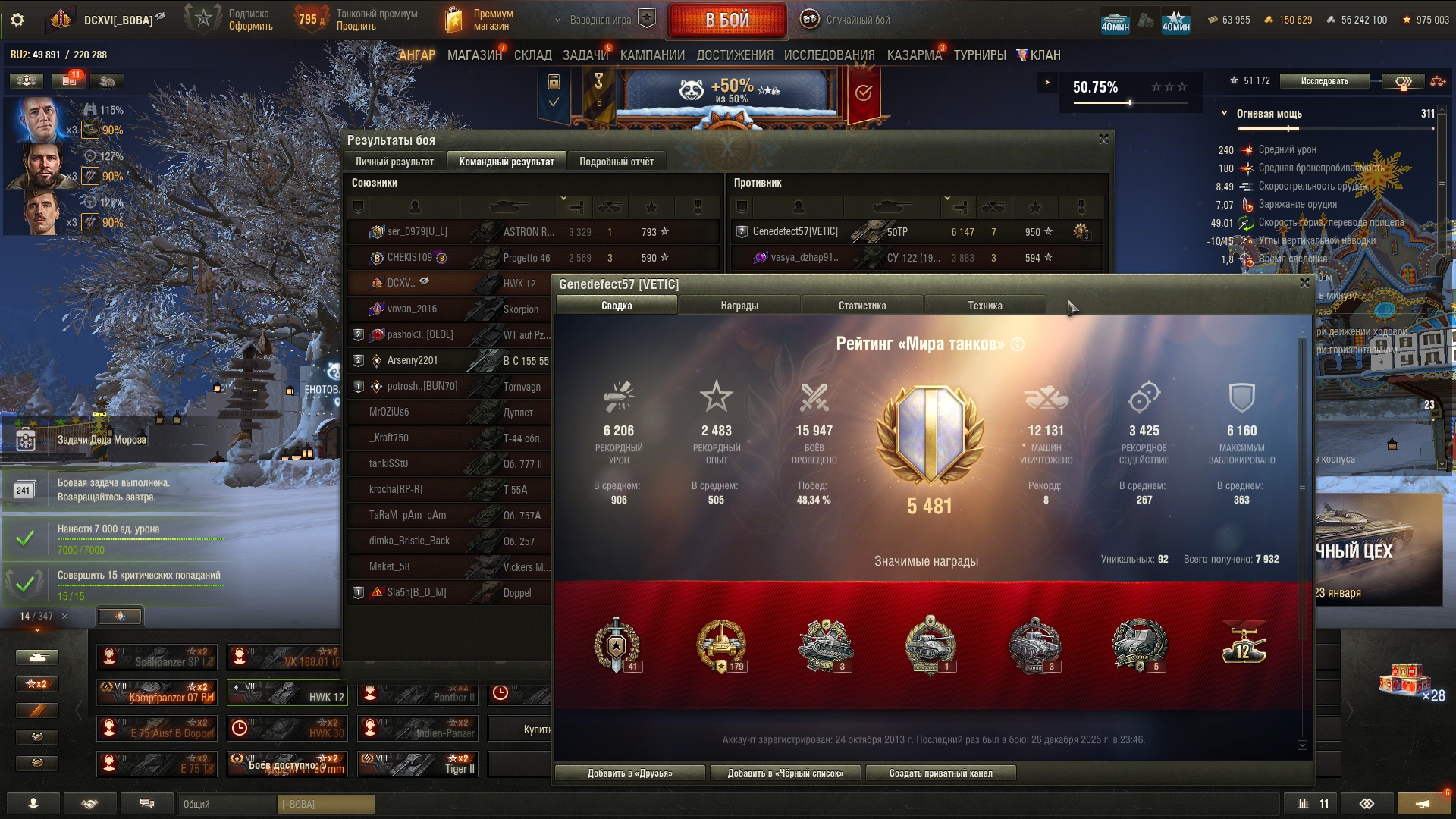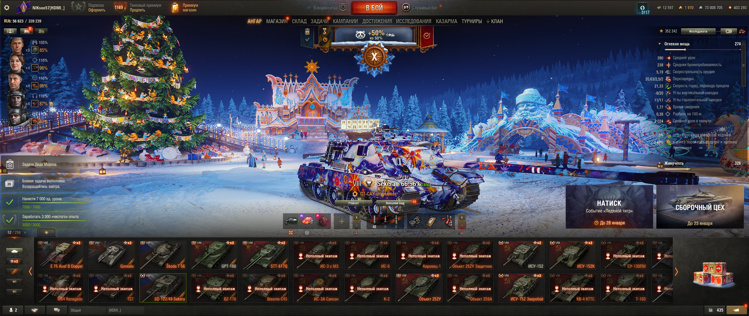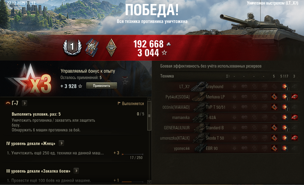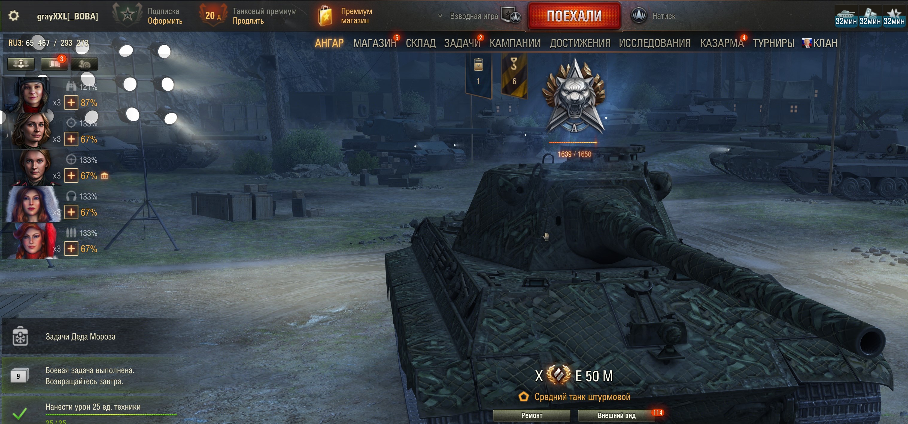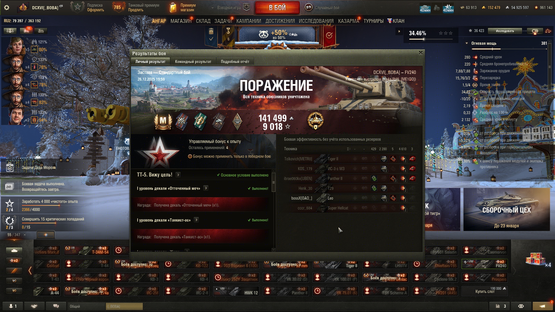 >>50588660 → >>50591102 → >>50591076 → Спасибо анонам за советы в прошлом треде, пердячая тяга не подвела, влетел с трех стами хп в Штюгмауса с 800ми, но видимо кто-то успел вдамажить ему и прокнуло. Осталась задачка на криты, если есть мысли и желание ими делиться, отговаривать не буду. Условие: Основная задача — повредить или вывести из строя суммарно 6 внутренних модулей или членов экипажа, второстепенное задание — уничтожить 5 машин противника. Леха 6к ммр