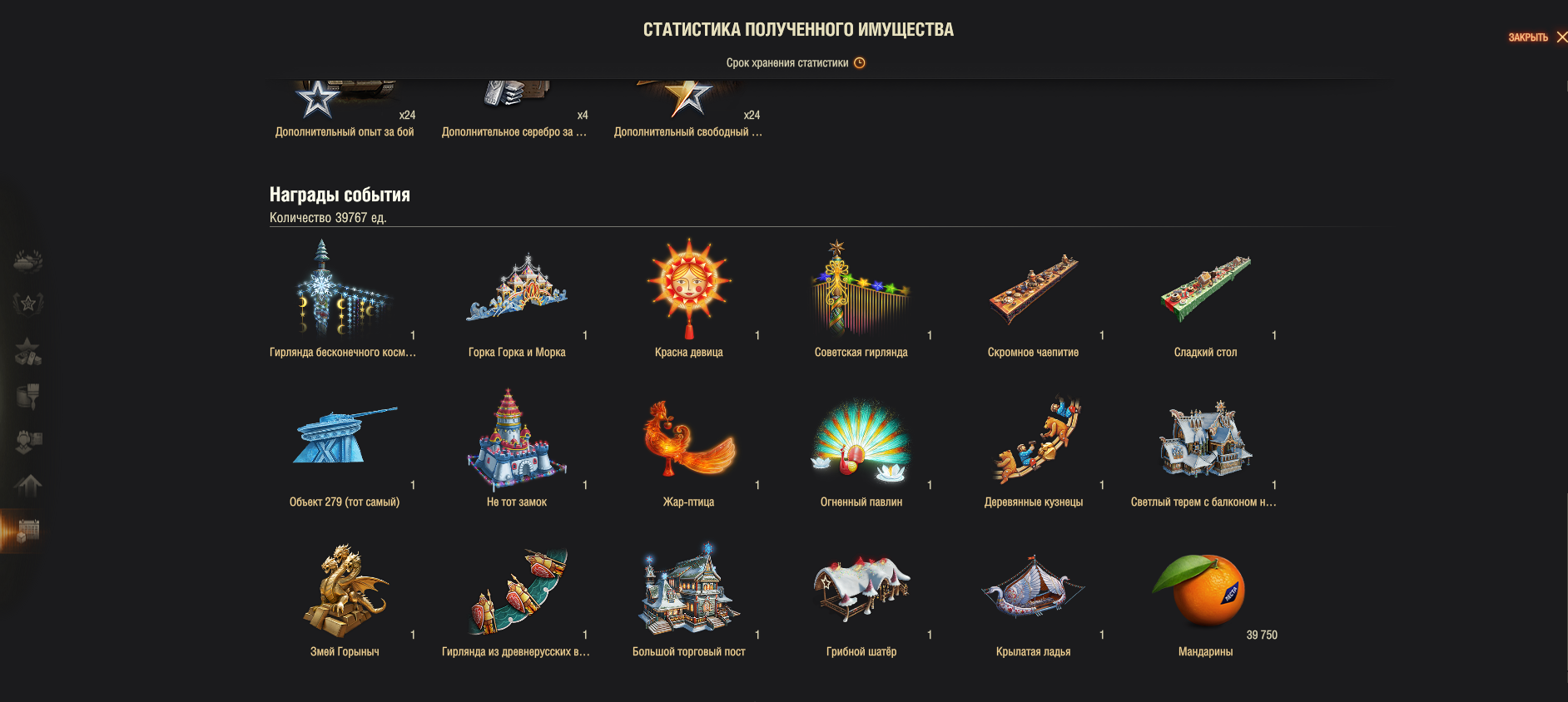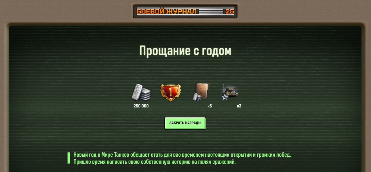 активным игрокам даст: 1 день танкового премиум аккаунта, Большой ремкомплект, Большая аптечка, Большой огнетушитель.