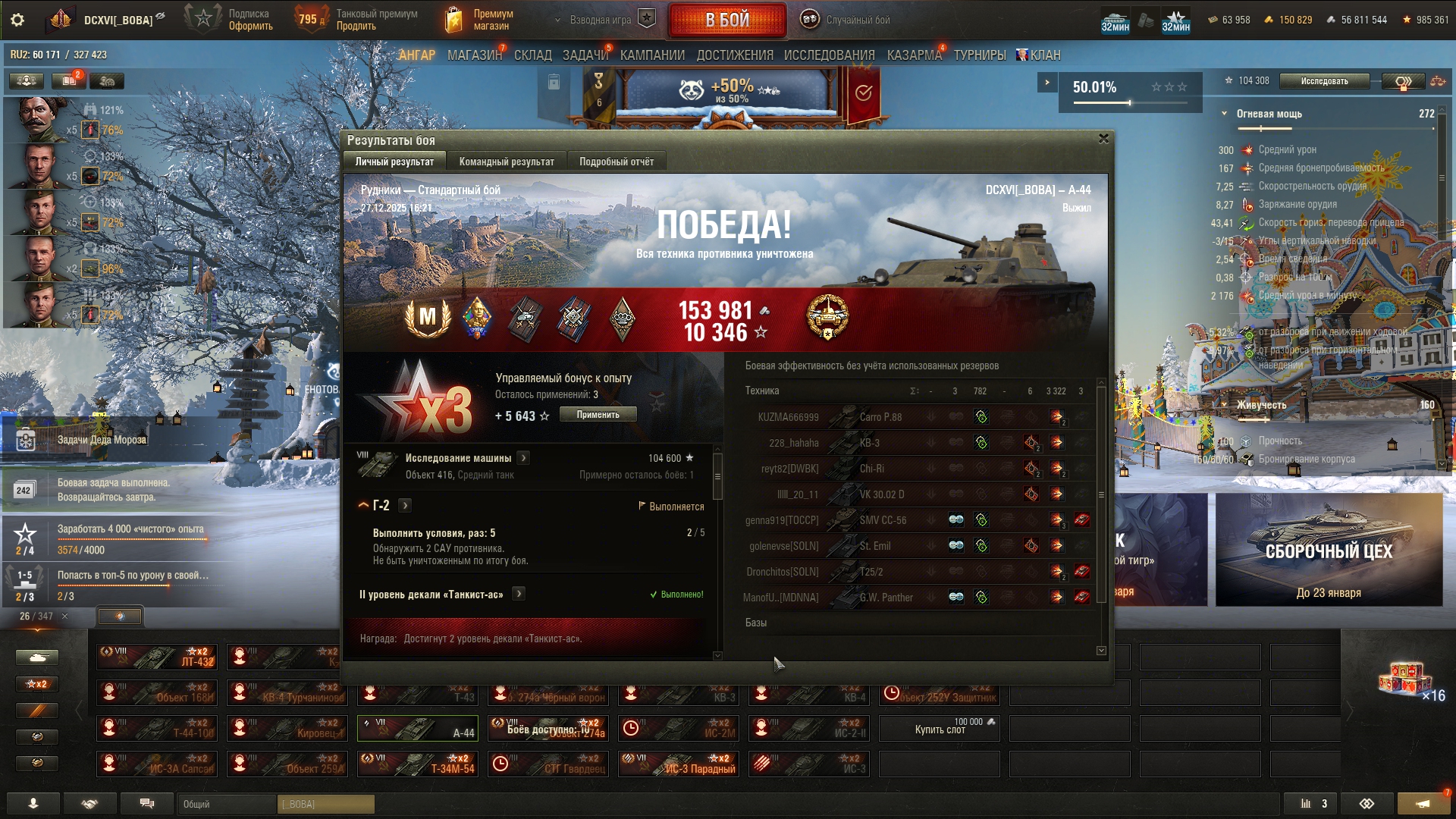 >>50599831 >>50598831 >>50598807 Выполнил таки, кланяемся. Посмотрел, что на акке самое дпмное и выбор пал на деда 6лвла, снарядил на максимальный фарш, и буквально с третьего боя фартануло. Сначала, как леха, перестреливался с т150 целясь в лоб башни, шло ни шатко ни валко, потом дошло, пальнуть в борт ромбующего 150-го, и сразу же подпал, потом еще один. По итогу даже перевыполнил план: 9 критов!
