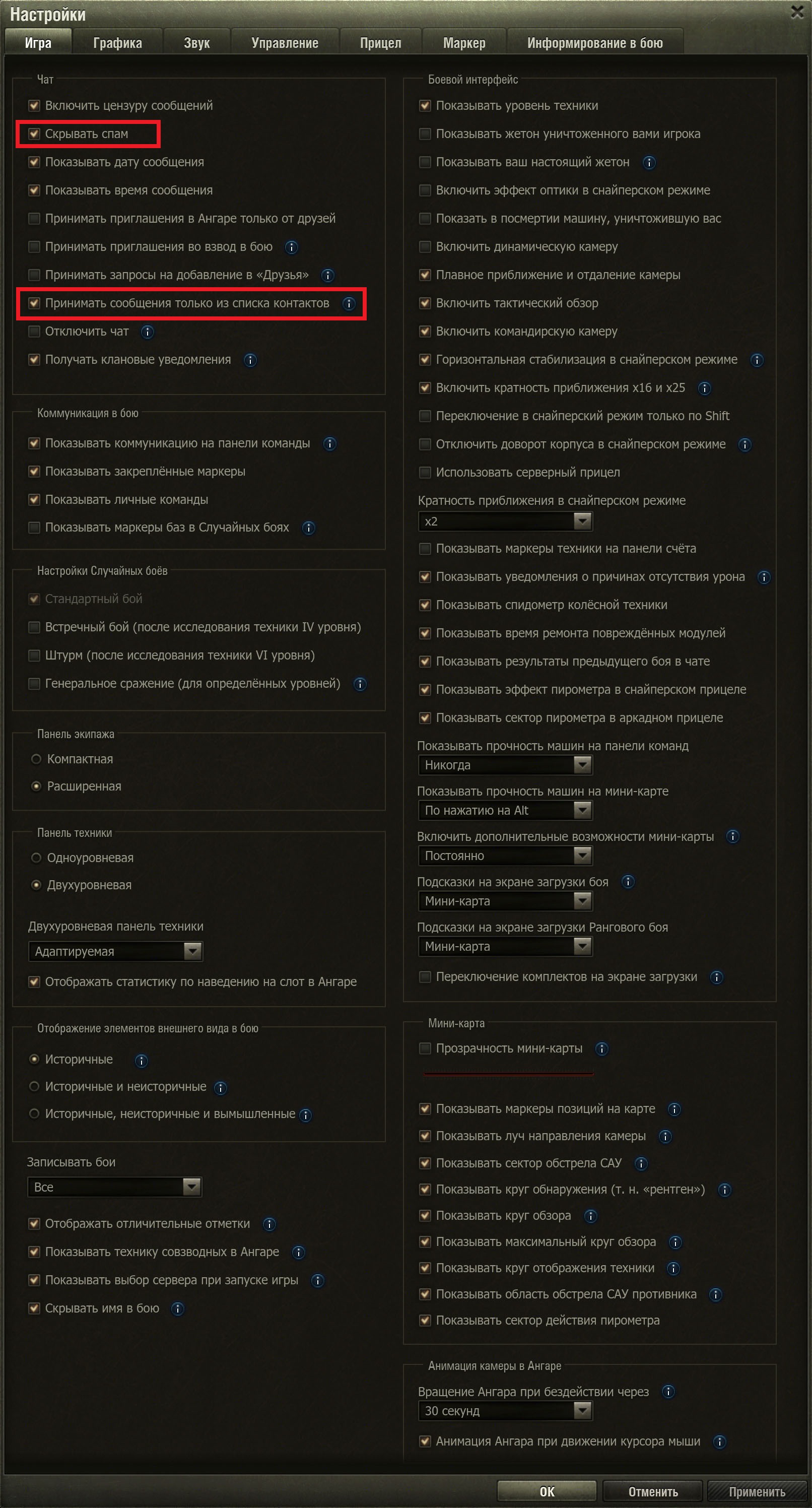 Чето в голос с танкиста. Зашел глянуть че там у свиней с настройками, ведь я туда захожу в лучшем случае раз в год при введении новой чудомеханики. А уж про чат не смотрел настройки последние лет 10. Оказывается находясь в ангаре можно пофиксить проблему говпредложений в личку нажатием трех или четырех клавиш. При чем я впервые вижу пункт про спам и хз что именно он скрывает и когда ее добавили. >>50612753 >в итоге под конец со мной спорит тот, за кого вступился, неся противоположную изначальному смыслу хуету. А чем еще в треде заниматься?