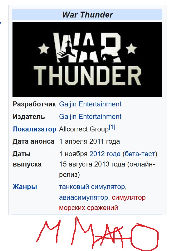 >>50613118 >Так в педивикии написано. А ты всему с этой параши веришь? Что про Бучу скажешь например? Ты на статью саму глянь - ЭНЦИКЛОПЕДИЯ блядь выдает в качестве исключения не имя собственное игры (врот оф тенкс/мир танков) а блядь "танки" - ну ясен хуй танки не ммо - это техника блядь.