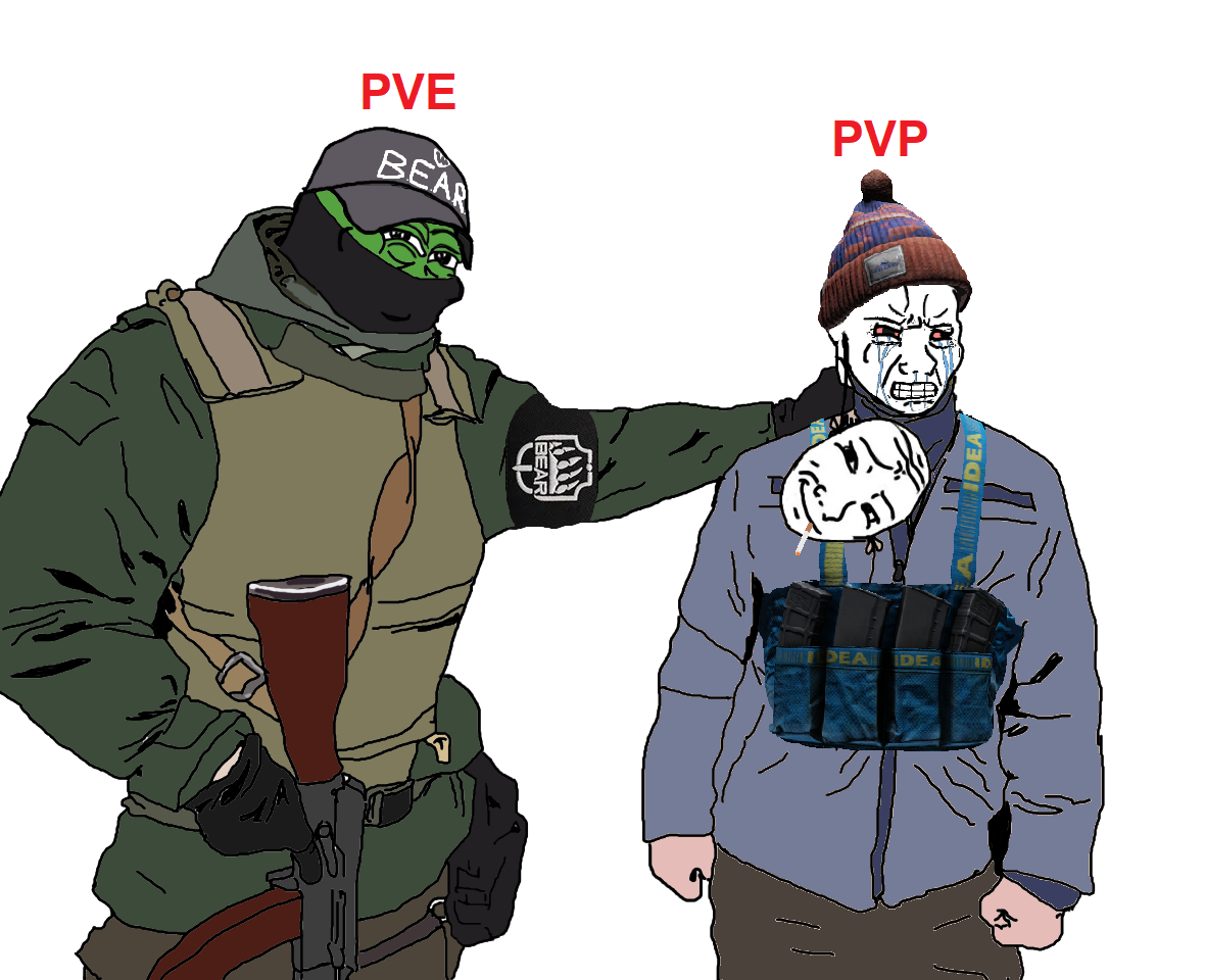 А вот я доработаю смену на заводе и пойду в аренку на чекпоинте на шифте бегать с удовольствием. Или в пве помоечки полутаю под ютубчик. Красота. И в хуй мне не впёрлось никакое дрочение пвп кустов.