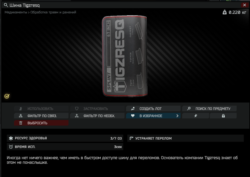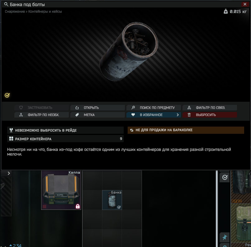Неэкипируемый лут, в примечаниях указано если он используется в качестве бартера, требуется по квестам или нужен для апгрейда Убежища: https://escapefromtarkov.gamepedia.com/Loot