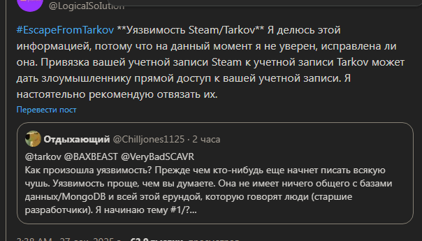 Эта игра меня доведет. Стал АМуДе боярином, собрался Тарков потестить после разгона кое-какого. До этого вобще не запускал. Так она стабильно начала вылетать после загрузки лута. Три раза так было. Я уже ОБОСРАТЬСЯ УСПЕЛ что Амудяне меня наебали. Но я все же кое-как пришел с себя и запустил проверку файлов в лаунчере и тот чот там нашел и сказал пиздуй в Стим перекачивай.