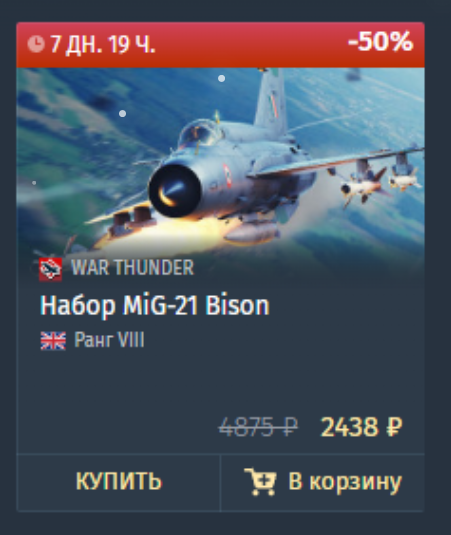 ТАК ЖЕ НАЧАЛИСЬ ПАКЕТНЫЕ СКИДКИ, УСПЕЙ КУПИТЬ Краткий обзор от анона в треде. НЕ НА ВСЕ ПАКЕТЫ. Набор F-2A ADTW -50% чудо Набор MiG-29 Sniper -50% чудо Набор Saab JA 37DI Viggen F21 -50% чудо, можно взять если нужен гриппен под наземный сетап. Набор Leopard 2 (OTCo) -50% можно Набор Al-Khalid-I -50% для ценителей Набор Challenger DS -50% до ввода бмпт его сетап был сильнейший на 10.7 Набор Merkava Mk.3 Ra’am Sagol -50% для фулл сетапа с леткой Набор F/A-18C Hornet (Швейцария) -50% чудо Набор M1 KVT -50% чудо Набор Т-80У-Е1 -50% топ прем игры Набор A-10A Thunderbolt (ранний) -50% чудо, маверики а не лочат и не дамажат, лучше прокачайте линейный Набор MiG-21 Bison -50% внезапно один из лучших прем самолётов. И бриты перспективная ветка.