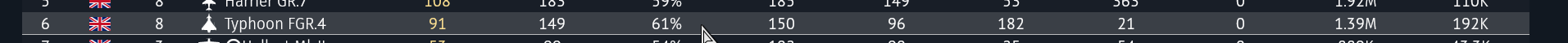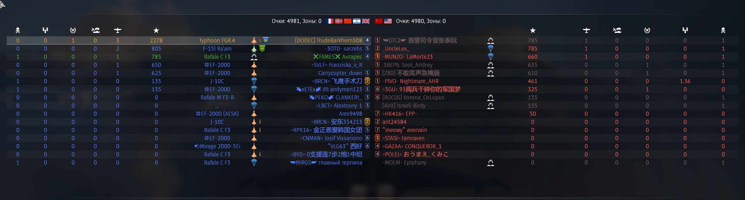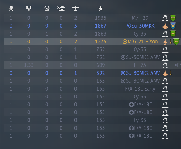 Пока не очень понял, как ПАРЛ ракеты использовать на Су-30МК2 в ДВБ. Радар постоянно теряет цель, ракеты после 20 км еле волочатся, все сразу маневры уклонения начинают исполнять. Да и цель держать надо, в резкий маневр не уйти. Получается фраги делать только влетая в толпу и раскидывая АРЛ через НСЦ налево и направо.
