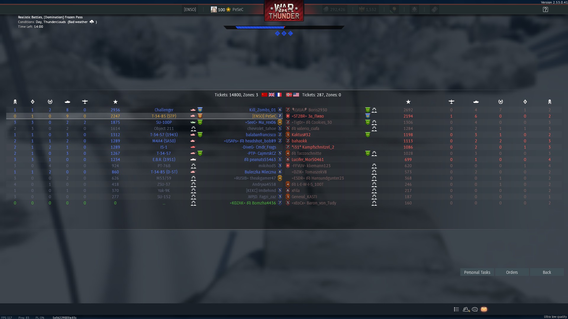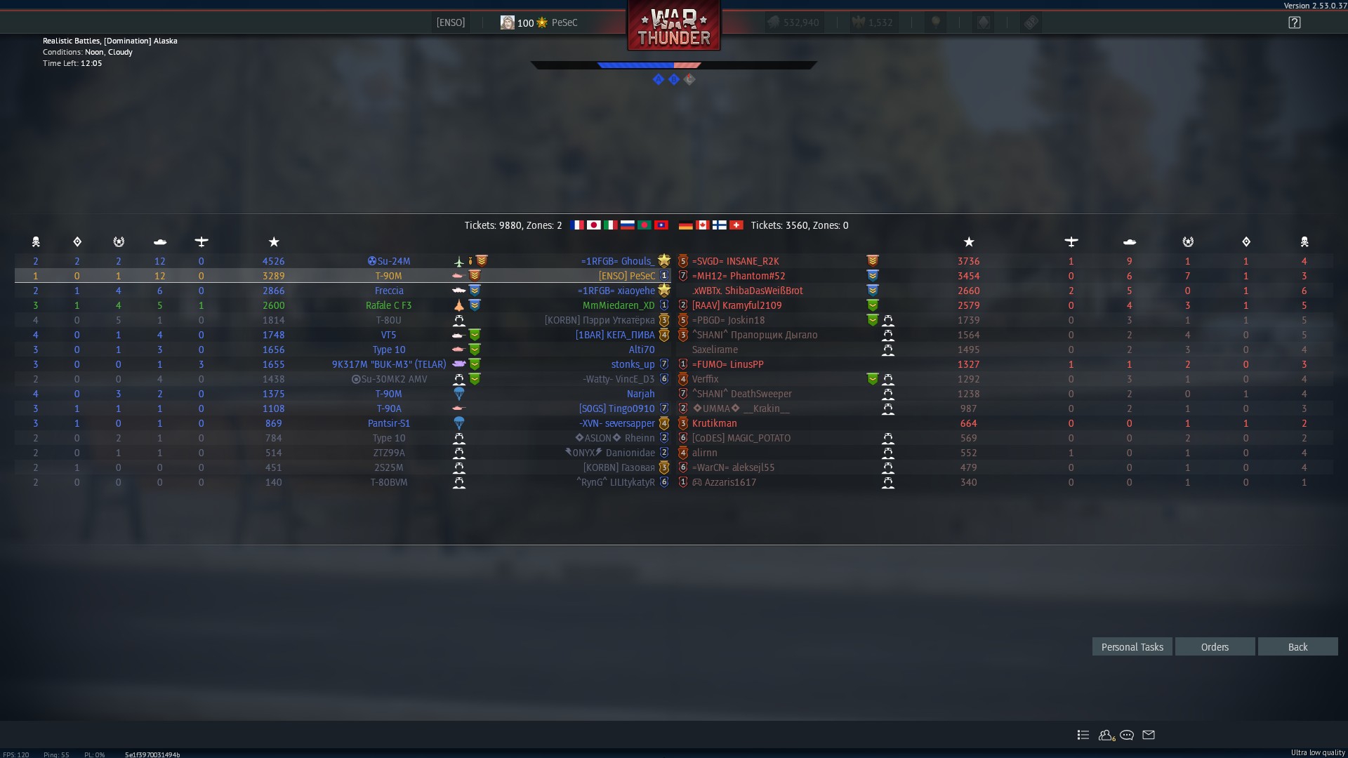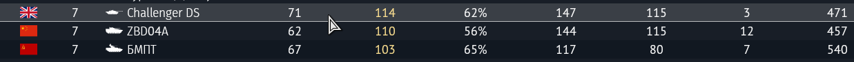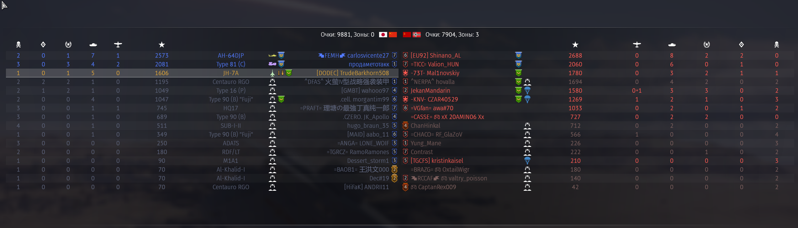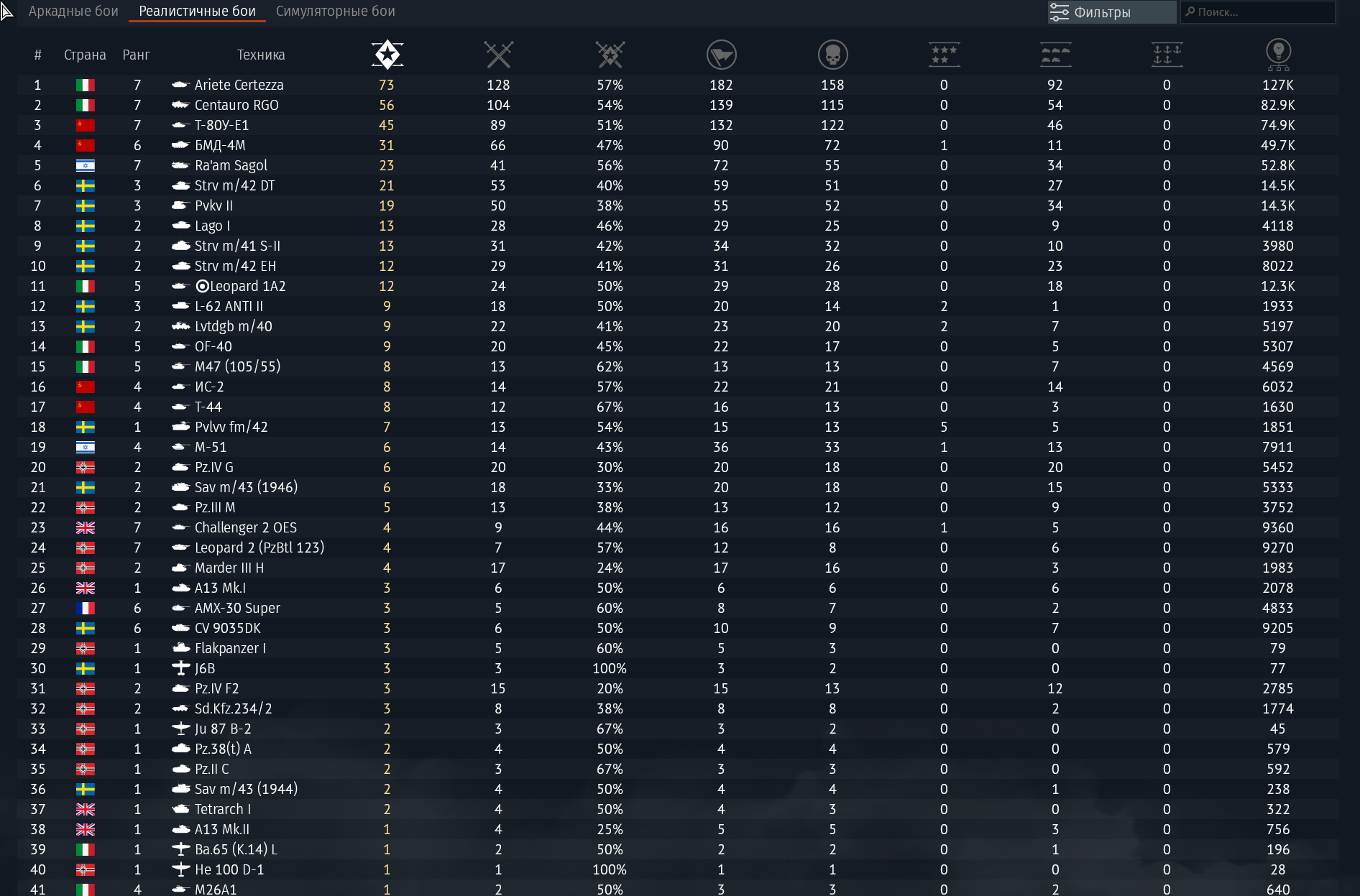 >>50610722 Амеры это моя первая ветка времен, когда и тысячи боев не было. В отличии от т90, которого я недели две назад качать закончил. А вот с леопардом2 я официально не знаю как это обьяснить. Да, его я тоже давно качал, но не так давно играл на нем еще, и все те же результаты. Но вот параллельно с ним я катал французского леопарда2 с буквально в 2 раза лучшим результатом. Шведского лео, который стрв, я тоже катал дважды, оба раза одновременно с немецким, и там тоже в полтора-два раза лучше результат чем на немецком. Немцы вообще проклятые какие-то. Тот же 2к определенно монстр-танк, но получилось на нем куда хуже чем на сабре с того же бра. >неизвестно на каком БРе на тайп90 ты эту стату набил Все известно, там же можно взять бои по сессиям. Начал недавно, до патча с расширением до 12.7 топов, а закончил вообще вчера. Мне он, кстати, тоже не понравился. >>50610732 Не понял о чем ты. Шведов на 10.7 качал, там больше. Немцев на 10.0 качаю, там больше. Бритухов качал на 10.0, там больше, на 10.7, там больше. Франция на 10.7, там значительно больше. Жидовна 10.0, там еще больше, но на 11.3 меньше. На япах больше. Китай чудо, италия чудо, но тут и не спорит никто. На амерах считай не играл. >>50610791 >мы рассматриваем весь сет-ап. Ну так так и пишите. На сетап я могу только пукнуть гринтекстом и смешной картинкой, в такие споры я не лезу, как выше уже сказал, оно мне не интересно.