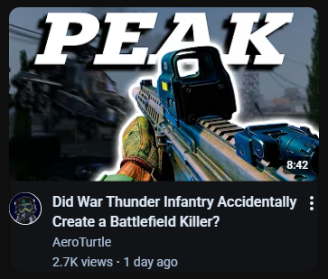И да - для пивной ЦА слишком, а зумеры будут в Батлу/Фортнайт/АРК/Колду на худой конец бегать. Еще и Енлистед останется отдельной игрой, нет чтобы слить все. Вот если так, то оптимально было б привязать Енлистед в единый клиент (тем более там 1-5 ранг уже есть) - а дальше как раз докинуть Корею, Вьетнам, Арабо-Израильские, Ирано-Ирак. Ах ну и сразу выкатить штурмовиков с ФПВ на Т90-Абрамсах - всегда можно, типа отдельным ТВД вне прокачки.