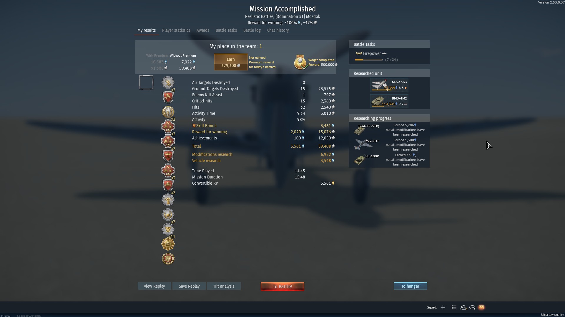 >>50614970 А мне норм. Ивент вышел не интересный, но и не шибко задротный. Сначала напомнило древнюю акцию на Катюшу, где надо было за час настрелять на БМ-8-24 пять таких же бедолаг. Тогда я в последние минуты управился. Но тут-то времени вагон! ПРОСТО играешь как мразь, и всё. Закидывай кого-нибудь по КД, подсасывайся к союзнику, пизди "фраги", нагло мешай договорнячку, рычи, двигай тазом, доминируй!