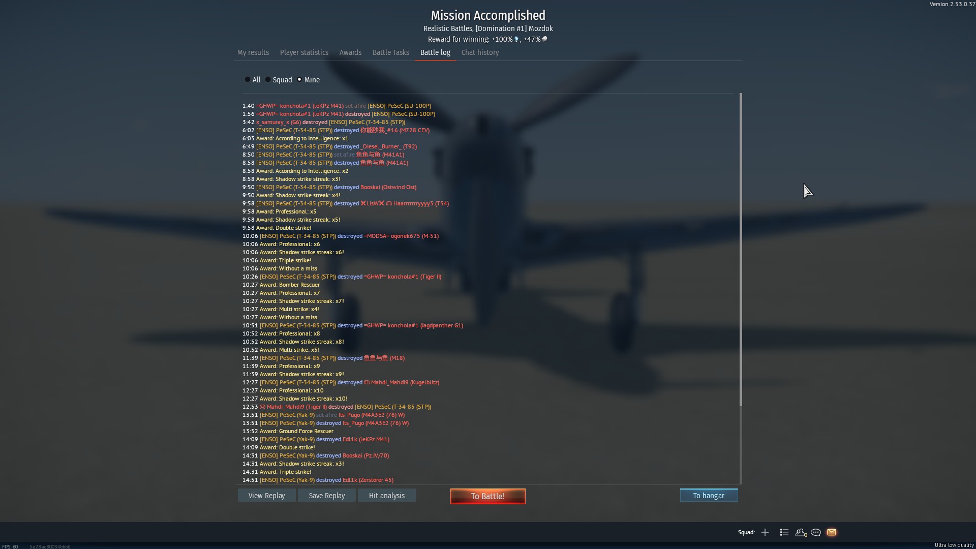 >>50614455 Вот даже тут. Фока 177 боев - 181 респаун. Спитфаер 109 боев - 114 респаунов. Респаун=Выезд. Респов больше за счет дублеров, так как чувак явно их в ТРБ тоже гонял.