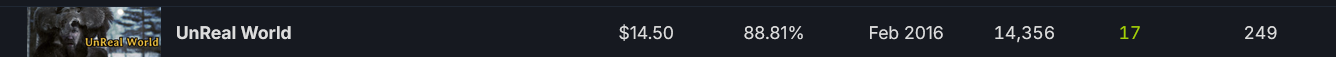 >>50721252 Положняк такой, что в ней два года уже 0 игроков. За два года 29 человек купило игру. Можешь по приколу купить, чтобы разраб офигел. У него наверное дома резко начинает орать тревога если кто-то купит игру, ибо это событие похлеще чем покупка лицухи Винрара.
