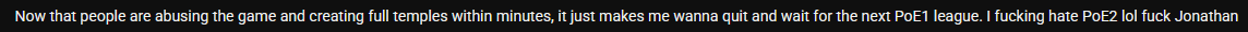 пое 1 забросили уже как пару лет пое 2 видно что просто не могут сделать нормально руки не те голова не та тоже в итоге выйдет вымученная залупа умерла эпоха и похуй походу пора искать другое пристанище эскапизма