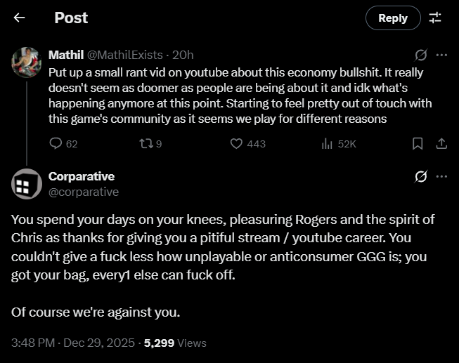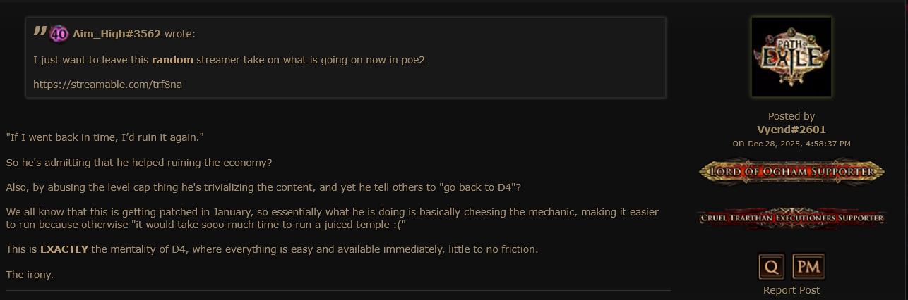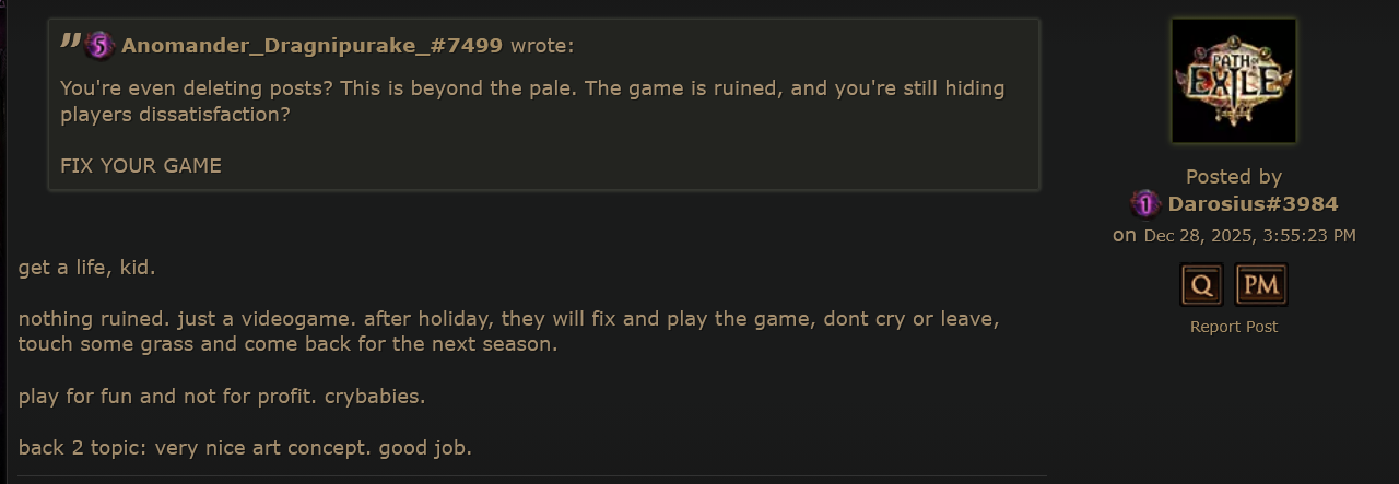 >Path of Math calls Chris Wilson bald >permanent ban from all GGG games forever >Fubgun calls all PoE players who question his exploiting stupid niggerfaggot cattle who should play D4 instead and that he's going to continue exploiting forever without punishment >supported by GGG