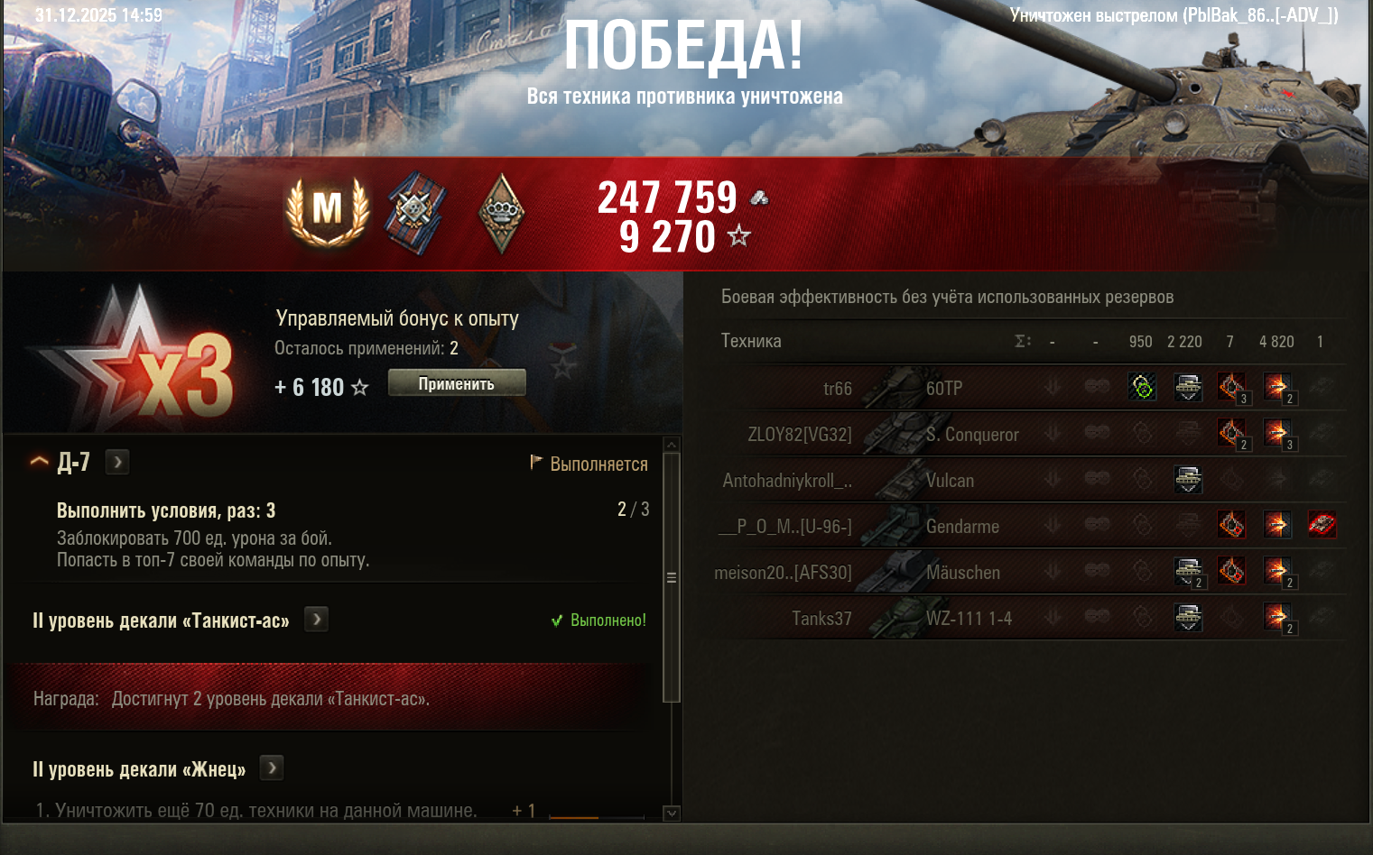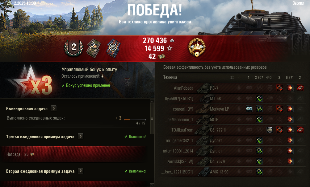Я точно скипну на 14 фрагов ст на шведах/амерах, т.к. на них сейчас не играю, и скипку на 4000к урона в 9 боях, т.к. играю в основном на 8ках премах, а с моим скиллом 4к на них не часто делается