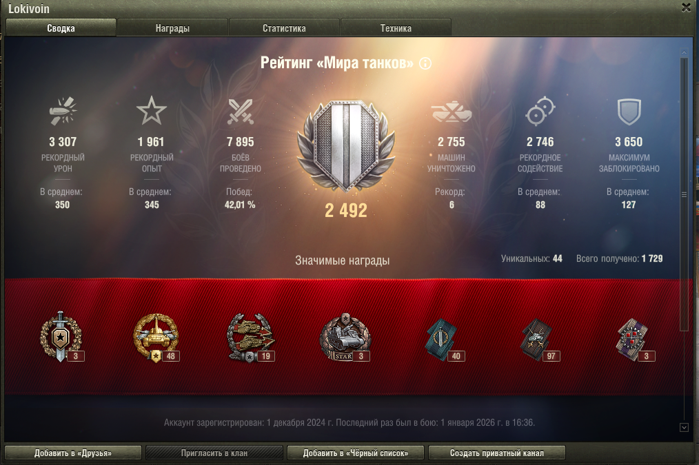 Основу продал, выпал вулкан с коробок за голду и сразу акк ушел. Играть буду на старом акке, пикрил, бои в песке были и вообще статка убита конечно, причем там странное типа 150 боев на Ке-Хо и прочие преколы. Зато хорошо что не забывал на нем иногда выбираться в различные движухи, уже когда катал основу, иногда на нем тоже че-то делал и халявку забирал всякую. Вот медальки есть за ББ например, пожалуй, самые топовые.