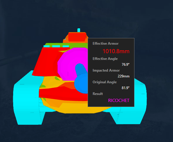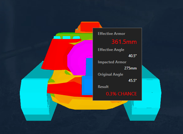 >>50626894 Лепех, нет, не учитывает. Он учитывает только угол и выдает шанс или рикошет. Т.е. ты выбираешь тип снаряда и изменяешь значение угла для рикошета.