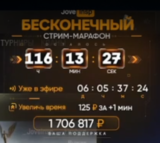 >>50622081 а какой смысл? хуесос уйдет спать встанет и точно так же как во все другие дни будет стримить танк только тут ещё и деньги дают зачем? Я понимаю марафон без сна где ценник реальный где ты на стриме отрубаешься в прямом эфире платишь за то что бы увидеть как пидорас на экране упадет на стол и уснет. Танкисты те ещё дегенераты платят кошельком за чудо создавая чудо контента.