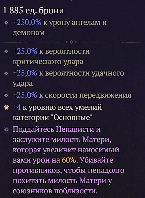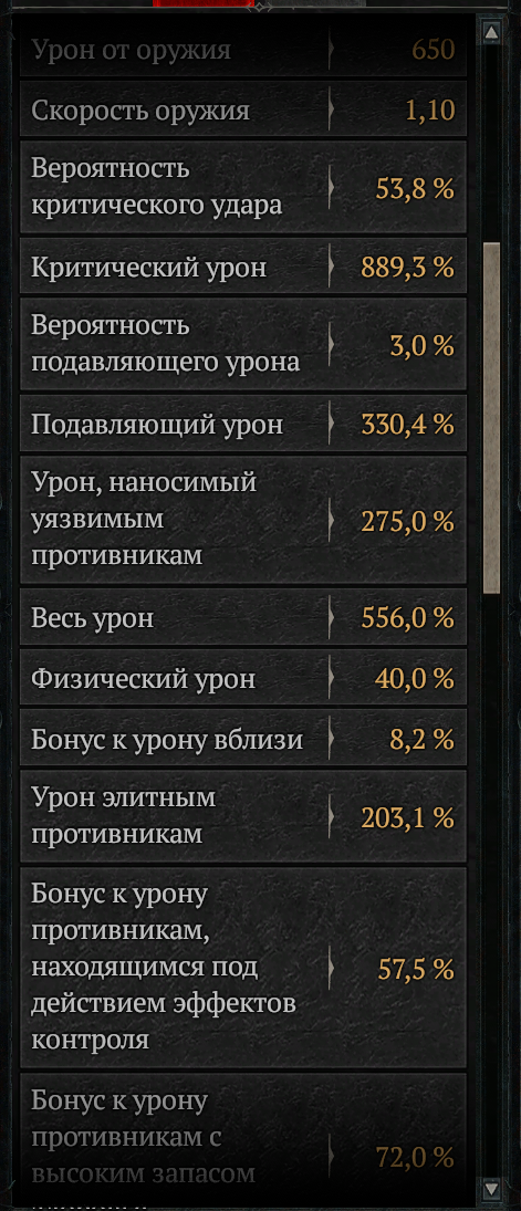 >>50639875 >Основной урон holy/fire если с перчатками. >Зачем ему физикал? Полез разбираться в механики, нашел гайды каких-то чудоедов, вудийо или как-то так - так они в дереве набирают ему физикал. Меня это возмутило до глубины души, потому что попытался потестировать, и кажется что физикал не бьет. Однако мало ли какое-то взаимодействие упускаю из вида. Пока получается, что нужен файр урон, нужен нон-физикал урон, вульнер урон, крит урон (оверпавер непонятно как прокать пока) и легендарные бонусы с парагона. Холи работает только с мерков, есть мысль вместе с мерками взять свинособак с руны и посмотреть, будет ли прокать с них. Но тестировать на дамми откровенно тяжело, поэтому и хочется куркулятор. И эмулятор парагона - сравнить выхлопы с разных путей в дереве.