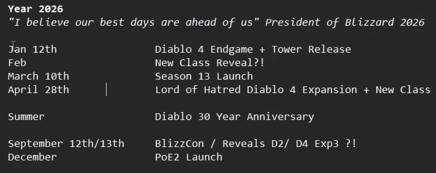 Есть например конкуренты это диаблоклоны вторичные(ласт эпох, пое), так там релиз сезона и дальше все тухлее и тухлее, близы хотя бы могут мету зашафлить посреди сезона, что иногда поджигает жопы, но тем не менее говорит о том что близы имеют яйца.