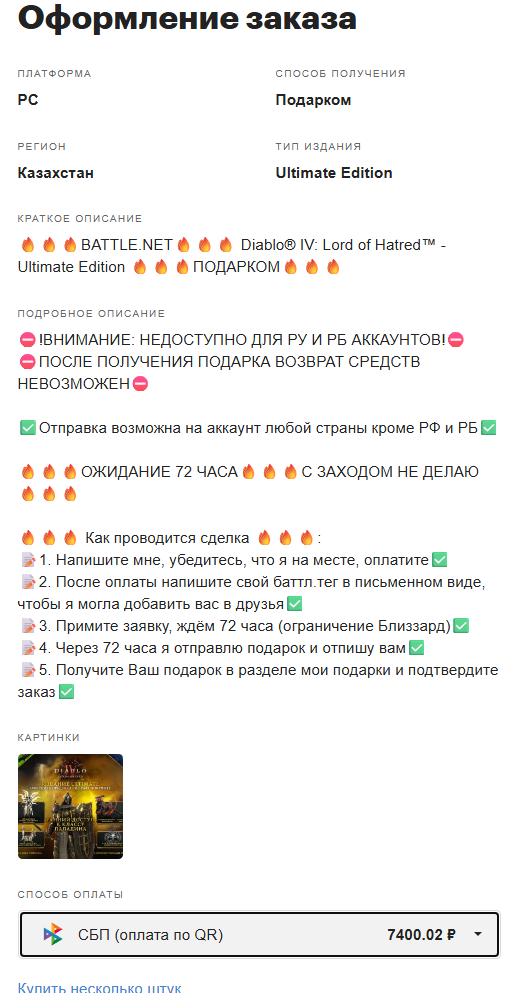 >>50627068 Сам стим не банит на изгры, недоступные для региона. Раньше вообще для руаккаунта получить невозможно было, народ меня на Турцию и Казахстан регион, сейчас, народ пишет, что гифтом получить можно и на ру-стим. Тут, к примеру, https://plati.market/itm/diablo-iv-lord-of-hatred-choice-steam-ru-avto/5589861 на руаккаунт продают дополнение тоже. Но могут быть проблемы с покупкой платины и косметики, поэтому заграничный аккаунт всё равно лучше. Прикреплять к русскому аккаунту Баттлнета можно стим из любого региона.