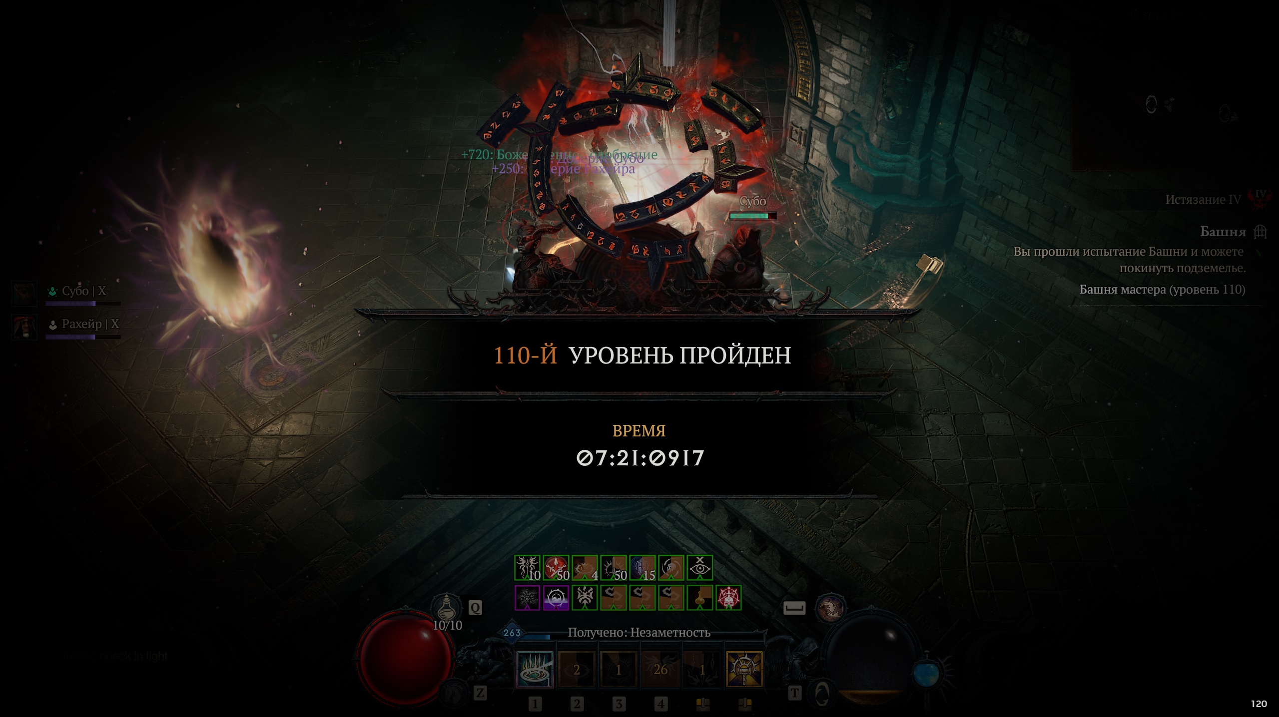 Пробежал пару раз башню, в текущем виде - бесполезная хрень, почему рейтинг нельзя было прикрутить к яме - непонятно. Структура уровней, сила, кучность мобов и получаемый опыт по ощущению соответствуют аналогичному уровню ямы. Дроп отсутствует совсем. Как и в тройке, с элиты падают сферы, ускоряющие прогресс, чтобы был хоть какой-то смысл с ними возиться. Добавили гоблинов, с которых падают эти же сферы, на высоких уровнях их можно "доить", но на сколько это лучше просто зачистки мобов - тоже пока неясно. Максимально странное решение - добавить ХП столпам, которое нужно им снять перед использованием, да и в текущем виде они гораздо слабее великих святилищ из 3-й части. Ну и самое приятное отличие от ямы - теперь финальный босс спавнится сразу же рядом с героем при накоплении соответствующего уровня прогресса, что позволяет перейти к его выпиливанию не теряя текущих баффов. С другой стороны, если он заспавнится в каком-нибудь длиннющем коридоре, это может усложнить дело классам со слабой выживаемостью. Также нет процентной индикации прогресса, чтобы видеть, сколько осталось до вызова босса.