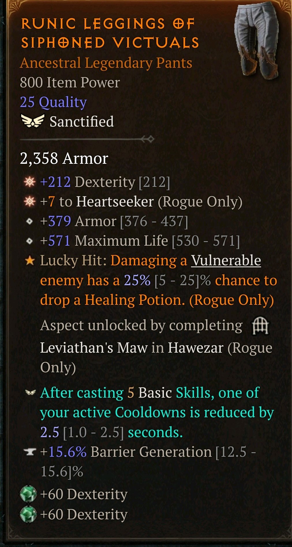 Просто бери любые штаны с ГА, где 3 из 4-х статов нужных представлены, желательно, чтобы 1 из них был Хартсикер, скиллы труднее всего роллятся у гадалки, потом накати сверху нужные аспект и поменяй 4-й стат на нужный. Потом добавь барьер генерейшн побольше у кузнеца, можно даже ГА там поймать. +5 или +7 в итоге к Хартсикеру у тебя будет, не так принципиально, особенно если выловишь +25 к силе вещи у ангела.