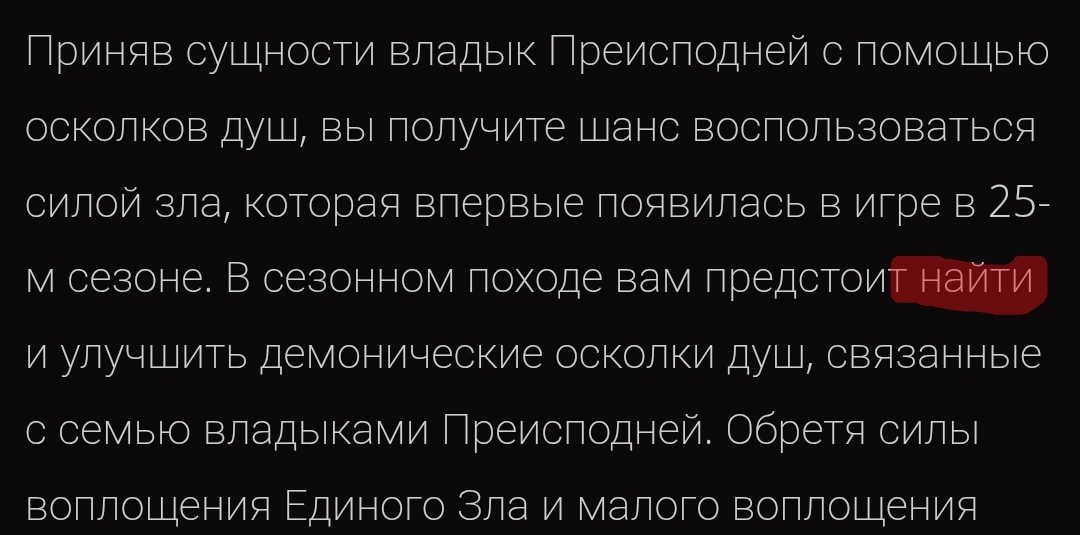 И нехуй превращать примитивные развлечения в религию, неделю-две-три, сколько тебе надо, от начала сезона поиграл, почувствовал, что устал от игры, и забивай до следующего сезона, как раз снова появится желание играть. В этом смысле серия дьябло гораздо лучше бесплатных дрочилен, где ты либо заносишь разработчикам, чтобы не чувствовать себя унтерменшем, либо как проклятый каждый день делаешь дейлики и виклики ради небольшой пайки, которую сбрасывают тебе с барского плеча разработчики.