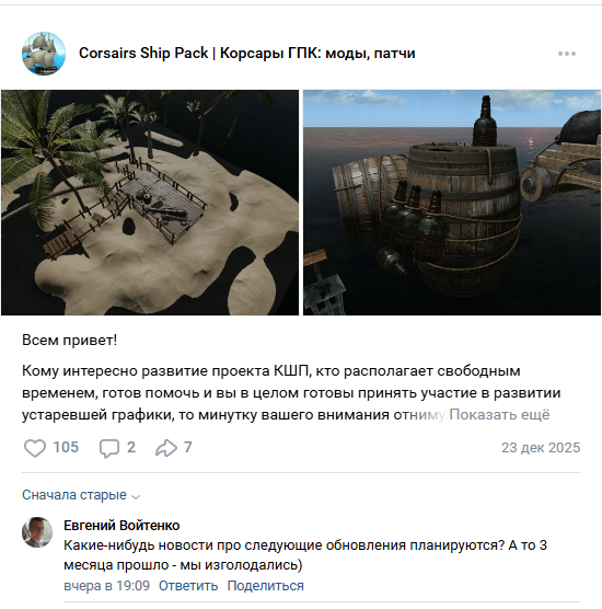 >>50622364 да это обалдеть просто, почему в готике 2 мододелы бесплатно сделали контента в 4 раза больше чем в оригинальной игре и выкатывают гигантские патчи каждый год, на бусти ни одной картинки под пейволом, на стим клали болт, в скайриме сборки по несколько крупных обновлений в году и только в любимых корсарах скриншот бочки раз в 2 года и калпак за 700р с одной моделькой корабля.