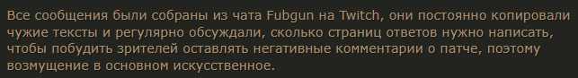 уважаемая Олдесса треда была полностью права в очередной раз зрители фабгана нарочно раздували из мухи слона манипулировали общественный мнением устроили саботаж на темы хотфиксов и к счастью потерпели тотальный крах