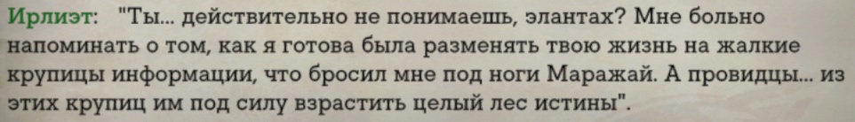 >Ирка все равно им тебя сдаст только потому что ты - монкай, тупо разменная монета Как и торговец в обмен на представителя династии сдаст эльдараса, даже если с ним дружил. Семья важнее.