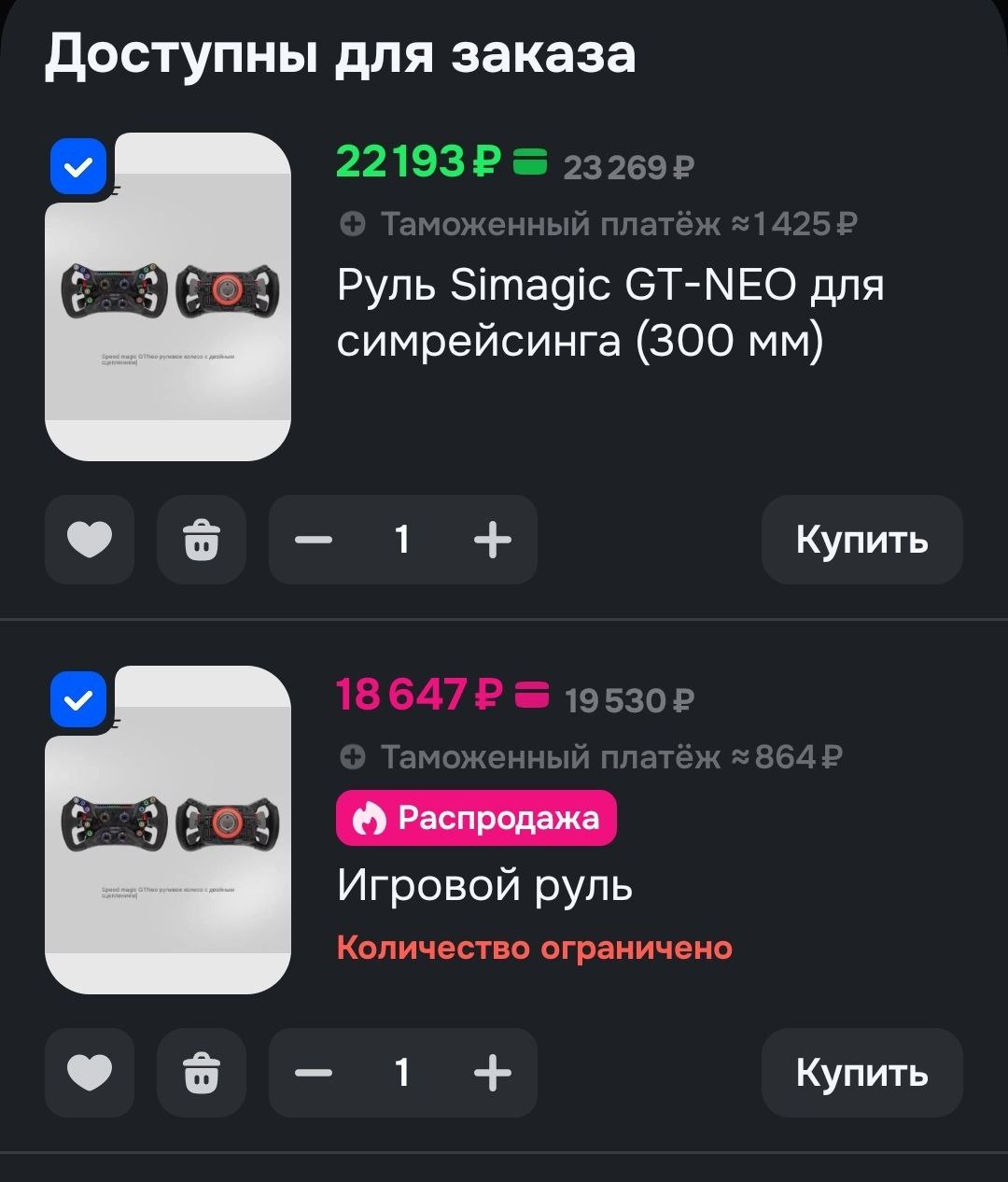 >>50637386 >отвалил 70+к за игровой контроллер для гонощек не глядя Что такого? У меня вот например покупки обычно делятся на 2 категории: либо я беру дешман\середнячок и закрываю этот вопрос, либо по какой-то необъяснимой причине я хочу, чтобы у меня было что-то хорошее, около-топовое. Про топ, конечно, громко сказано - для кого-то мой сетап будет ультра-нищим, но в среднем, ящитаю, мой кокпит будет явно выше среднего по палате. Я вот микроволновку недавно себе выбираЛ. Она мне по сути нужна просто разогревать ужин раз в день и можно было бы взять любой дешман за 3к, но нет - я хочу нормальную микроволновку, пускай и буду в ней только разогревать раз в день, поэтому взяЛ за 16к. Так же и с кокпитом - пускай я и гоняю раз в неделю, зачастую с ботами т.к. на большее нет времени, но я хочу, чтобы мой кокпит был хороший и мне не жалко потратить 70к на базу. Да, это не симукуб, но в целом достойный девайс.