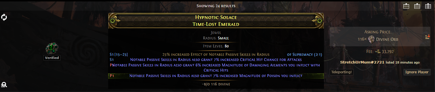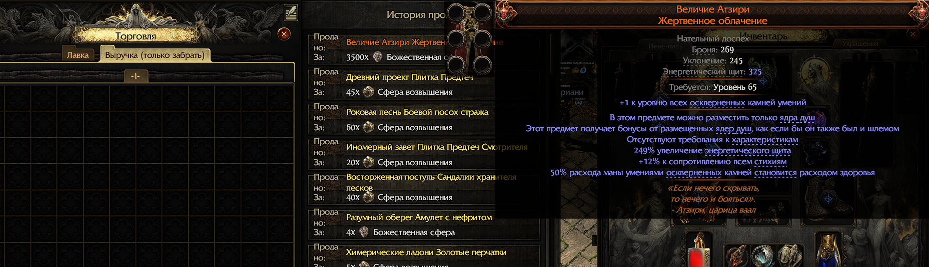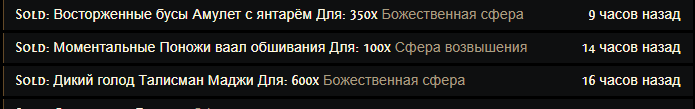 Под конец поймал себя на мысли, что «Человек познавший путь видит его во всем дао». Можно спекулировать просто на всем, средний игрок в пое не понимает эти сферки и в рот их ебал. Простой пример. Лежит кольцо на трейде за 20 див. У него есть брикнутый суффикс. В противном случае я эти кольца продавал за 600. Банальное ЕВ аннула даже очень высокое. Если же юзать омен \ виттлинг = изи мани.
