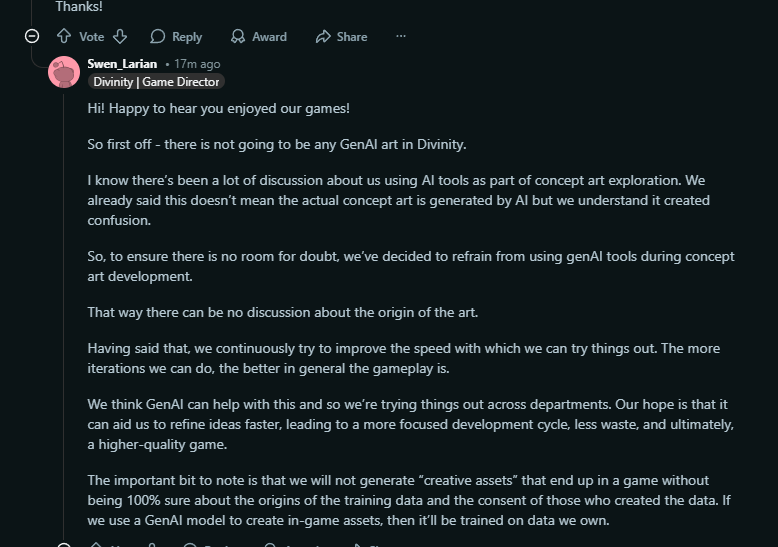 Larian выходит на прямую связь: завтра большое Q&A по Divinity после скандала с ИИ