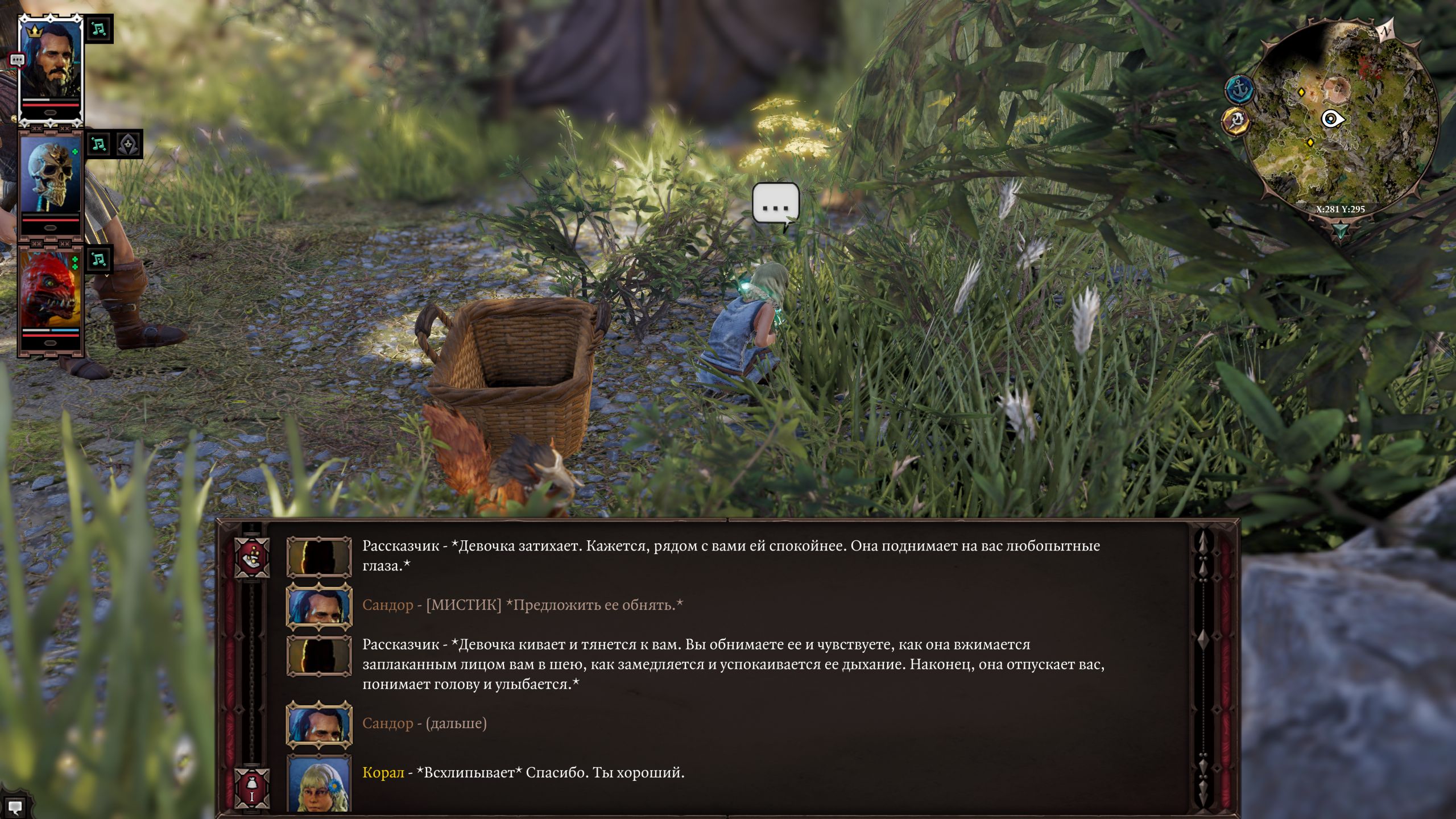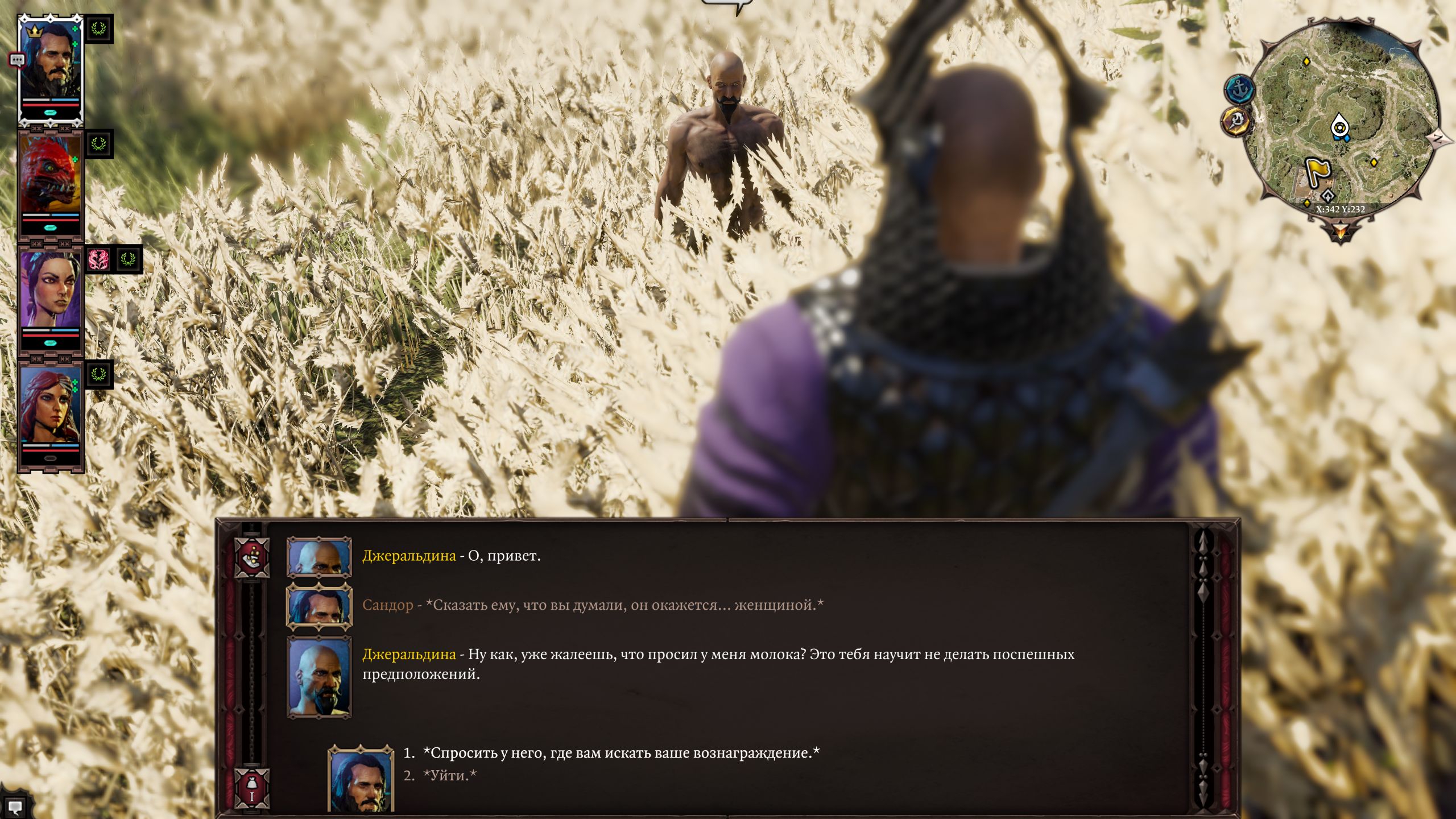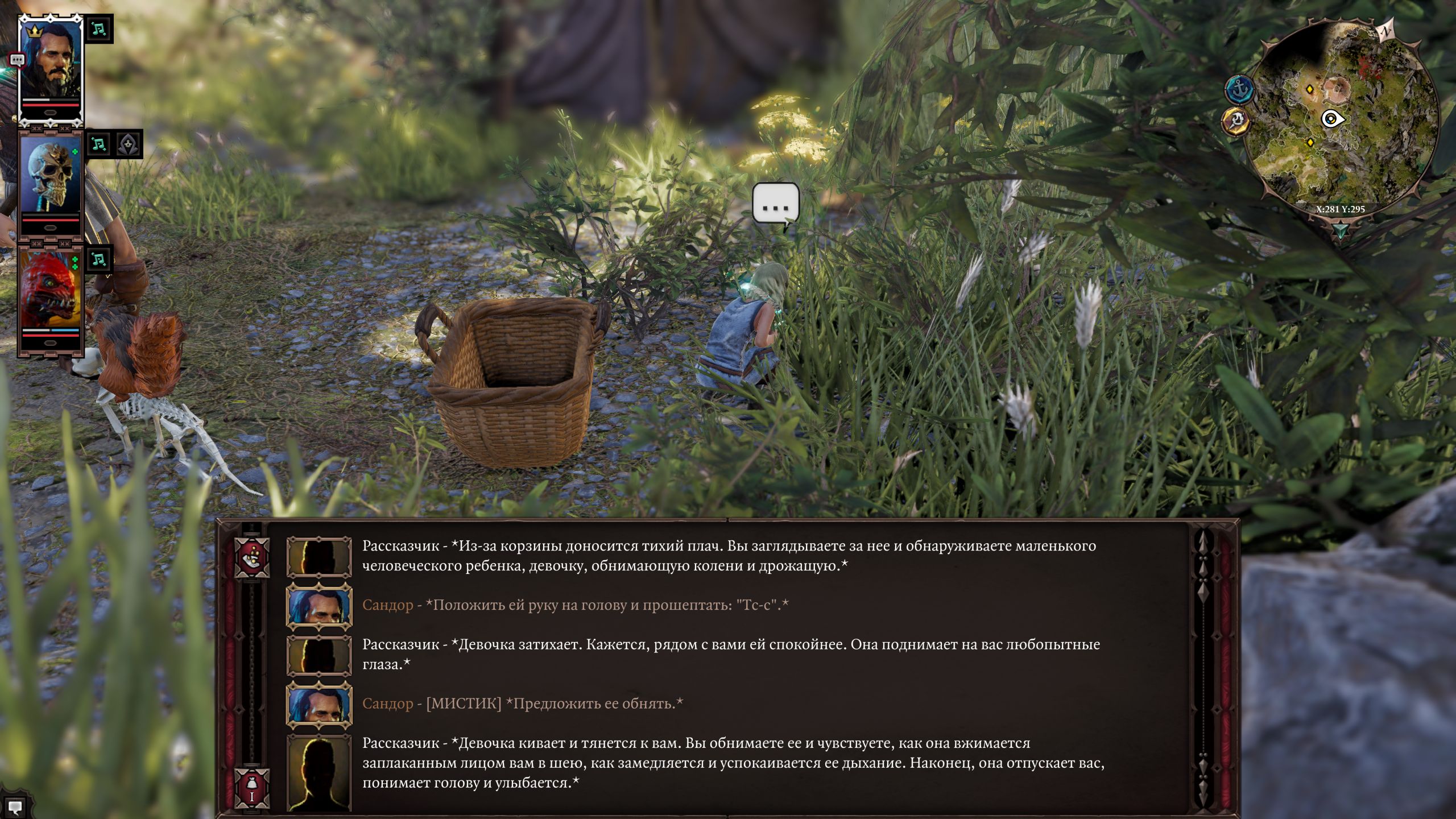 Из бесявого мне пока не нравится завязка, она не даёт мне ролеплеить. В самом начале тебе говорят, что надо доставать личинку иначе превратишься в осьминога. Единственное вменяемое решение - бежать сломя голову с гитьянкой в ясли за хилом. Почему за ней? Её подсовывают в самом начале и она реально шарит что к чему, когда как артефакт ещё никак себя не проявляет и у тебя нет отсрочки. Бежишь после ориентировки в роще на запад к мосту и разъебываешься об её сородичей.